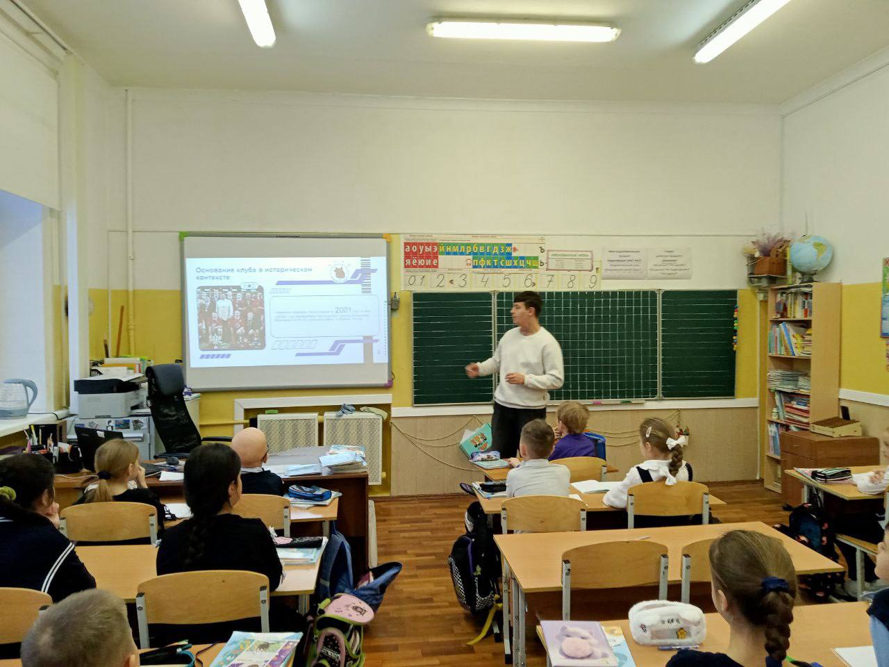 Сегодня наши ребята стали участниками увлекательной встречи с гандболистами — командой «Чеховские медведи». Ученики 2 А класса (классный руководитель — Наталья Анатольевна Цветненко) познакомились с легендами спорта и узнали много нового о становлении команды.