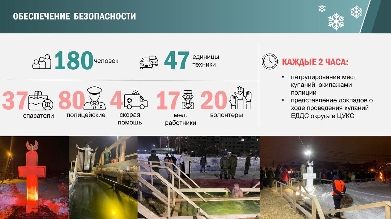 Для нас принципиально, чтобы всё было сделано аккуратно и безопасно: надёжные подходы и настилы, освещение, дежурство спасателей, полиции и медиков, удобная логистика и транспорт. В ночь купаний будут работать продлённые автобусные маршруты, рядом с купелями — места обогрева, горячий чай, освещение и навигация.