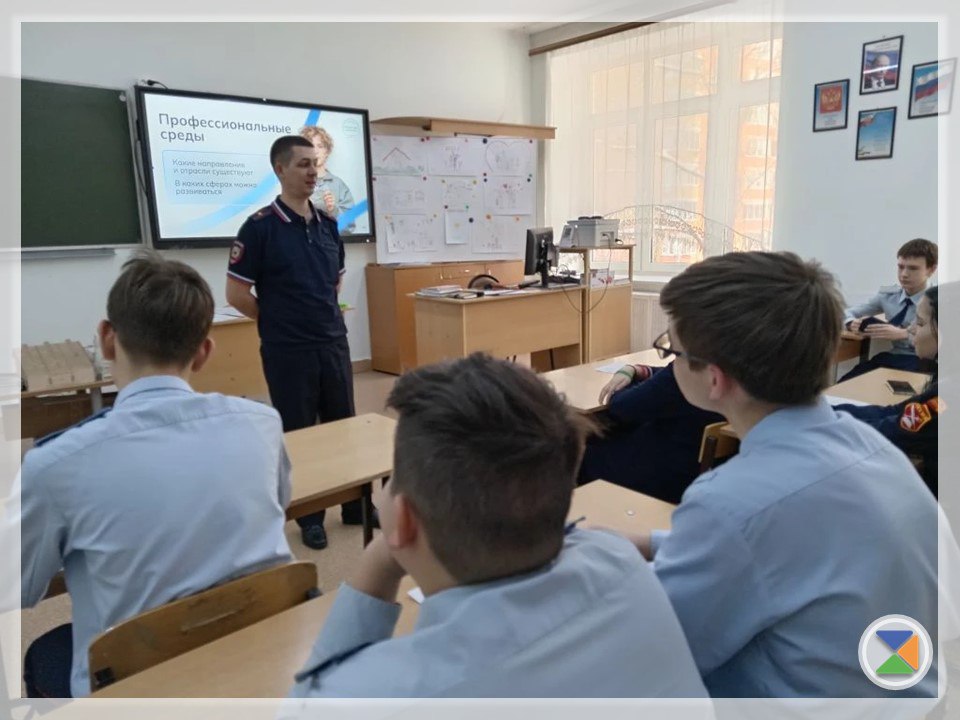 На занятии присутствовал майор полиции Сергей Вячеславович Кузьминов - он ответил на вопросы школьников.
