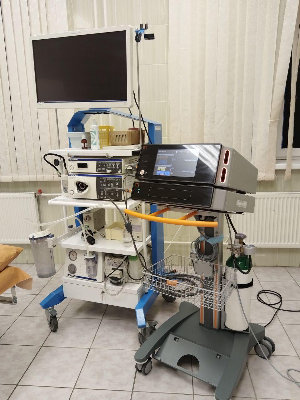 Для отделения эндоскопии поставлен расширенный комплекс BOWA ARC 400 с модулем ARC PLUS, который включает технологию аргоновой плазменной коагуляции. Этот метод обеспечивает бесконтактную и точную остановку кровотечений, например, из язвенных поражений желудочно-кишечного тракта, что повышает безопасность эндоскопических вмешательств.