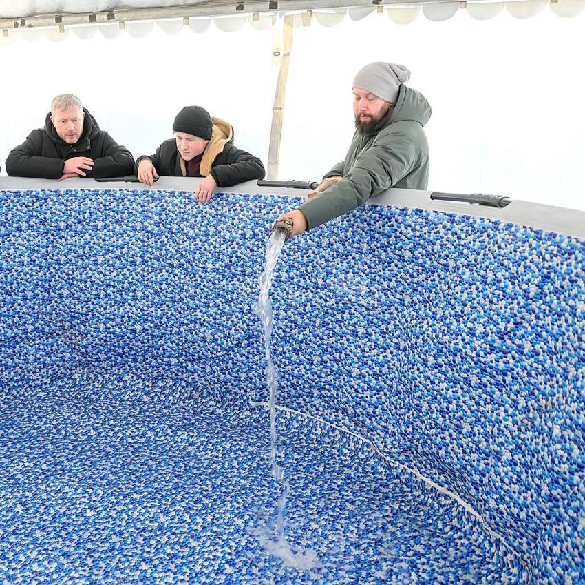 «Установка одной купели в такой мороз занимает около пяти часов. Конструкция продумана до мелочей: сначала укладывают теплоизоляционное основание, затем собирают каркас и устанавливают саму чашу из прочного прорезиненного материала. Чтобы заходить в воду было комфортно и безопасно, специалисты устанавливают лестницы с перилами и специальными нескользящими настилами из искусственной травы»,