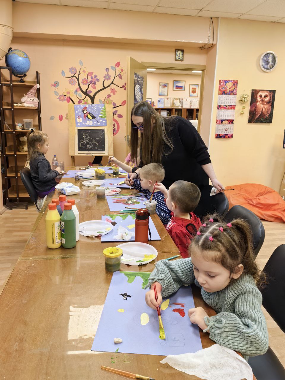 Наши самые юные читатели-дошколята вспоминали, какие птицы остаются зимовать в России, и дружно рисовали симпатичную синичку. А чтобы ей было тепло, нарядили её в настоящие зимние атрибуты — шапочку и валенки!
