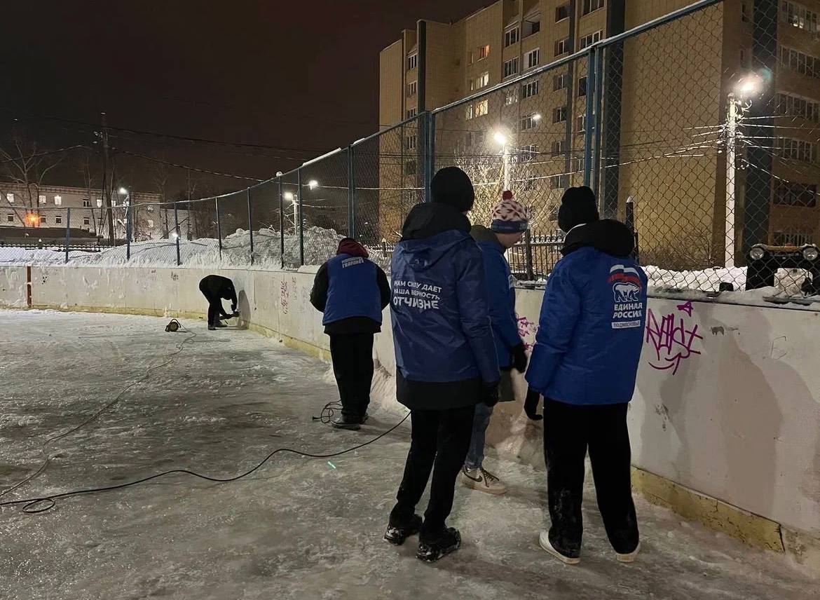 Первыми на точку вышли мологвардейцы и активисты партии «Единая Россия». Они провели подготовительные работы, обеспечили начало заливки льда с использованием пожарного гидранта, а также расчистили территорию и привели в порядок прилегающие ограждения.