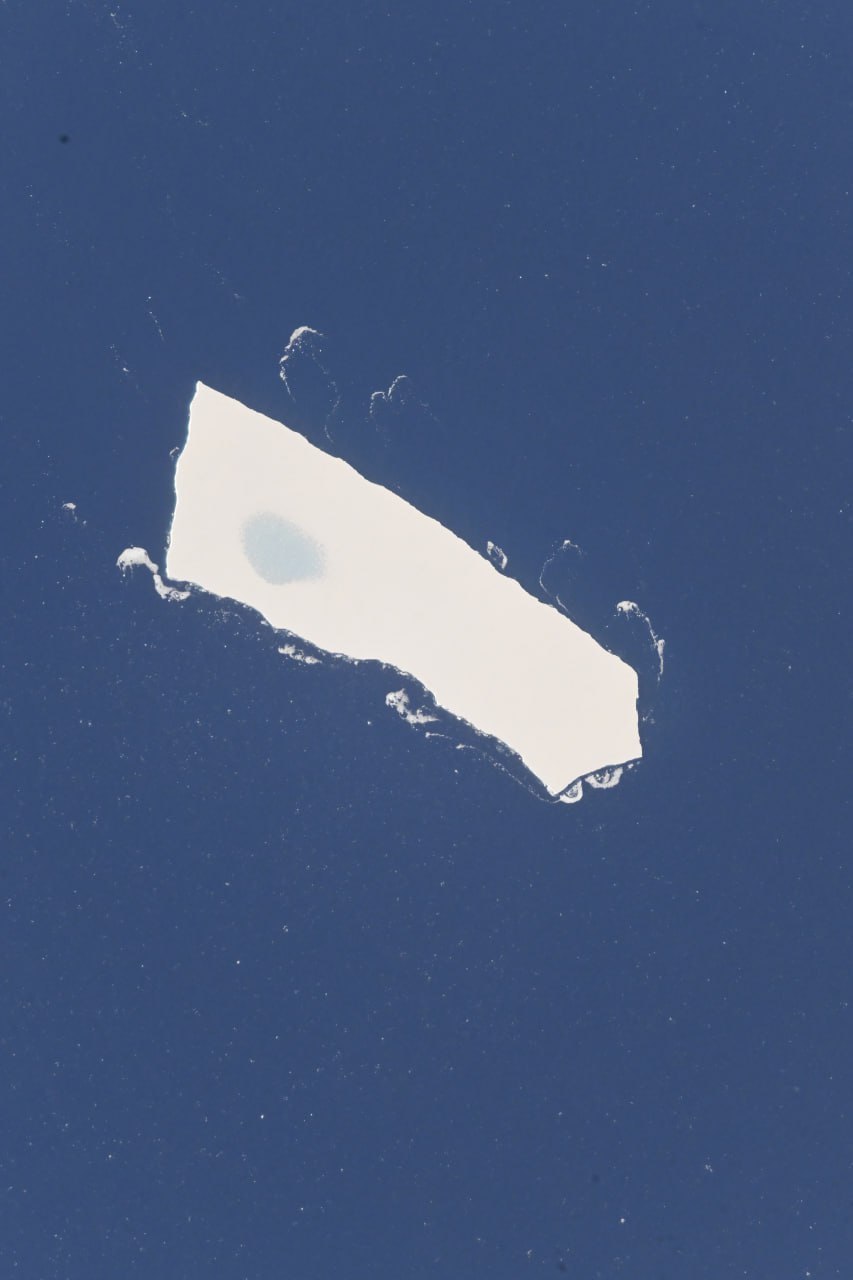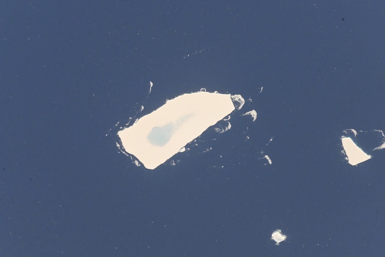 На снимках — айсберги, дрейфующие в Атлантическом океане. Фотографии сняты с высоты около 400 километров.