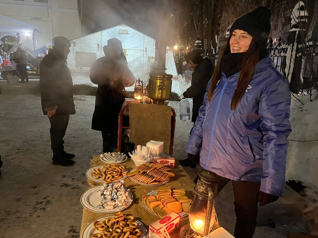 Молодогвардейцы активно помогали в раздаче горячего чая и сладостей гостям и прихожанам.