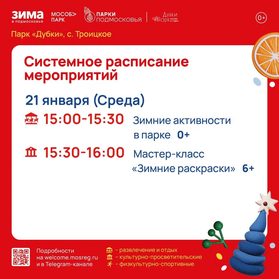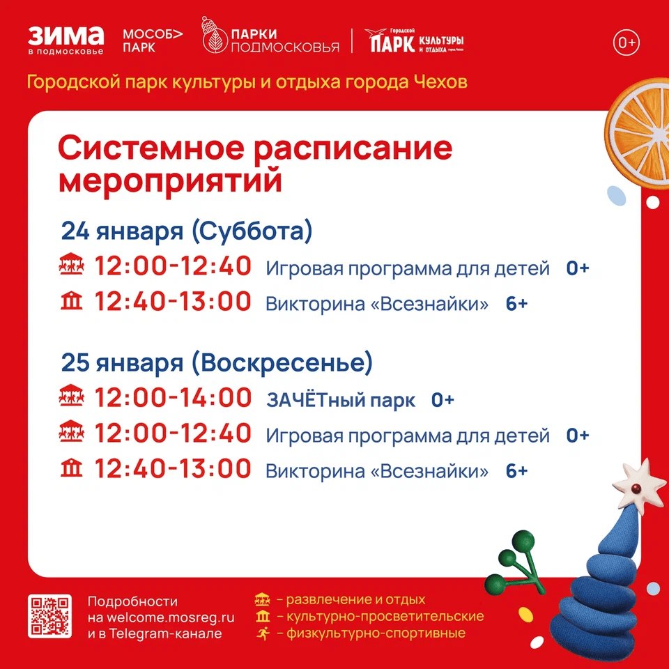 Расписание на неделю в Парках Чехова (19 января - 25 января).