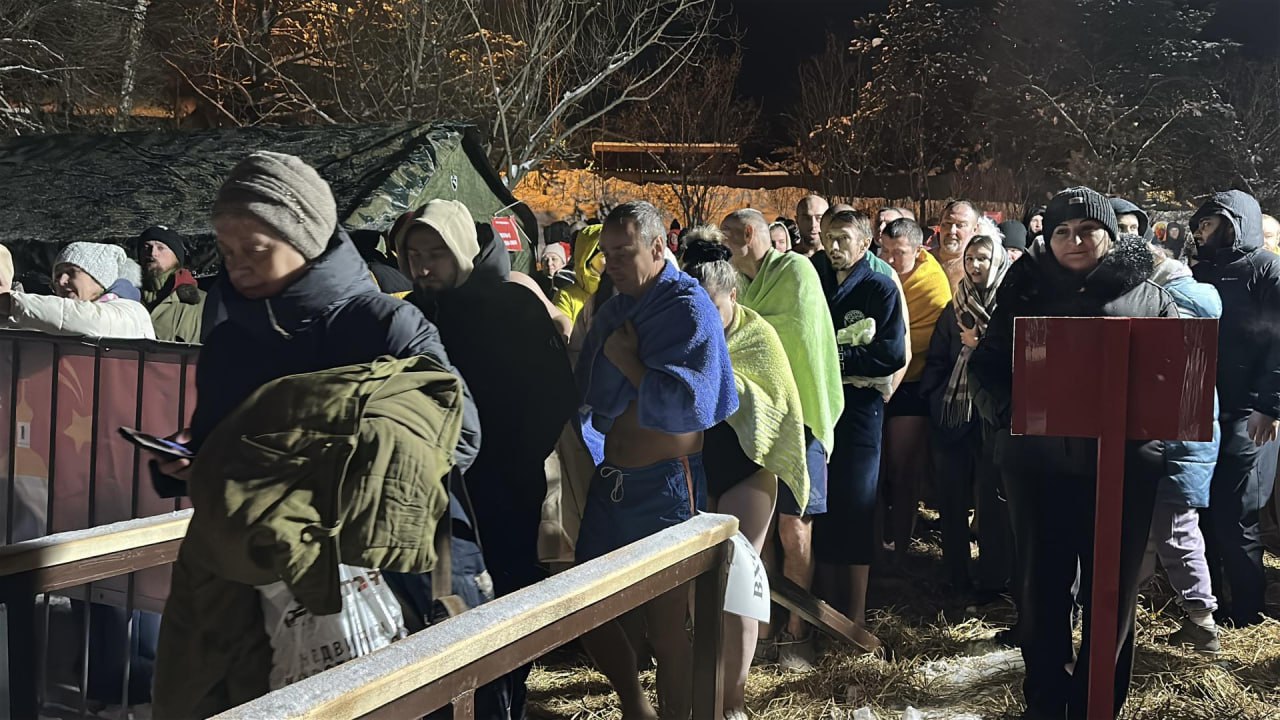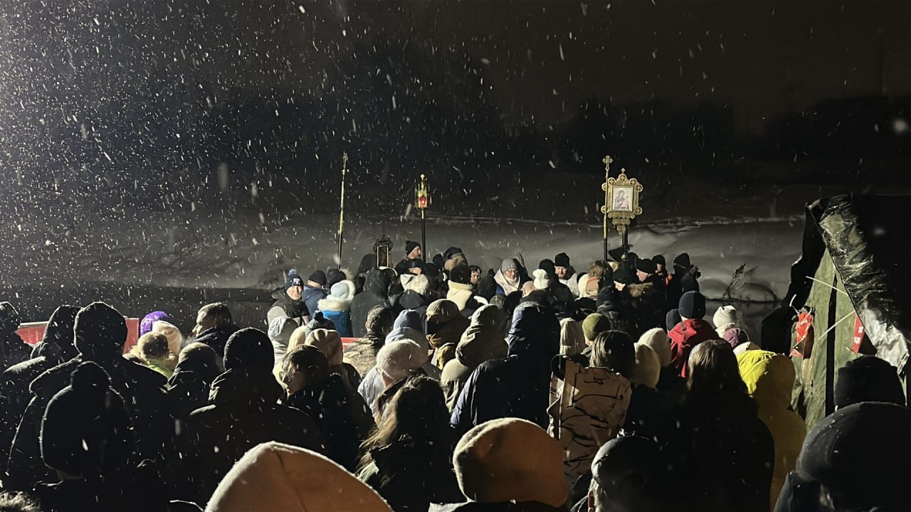 Несмотря на мороз и поздний час, у купели собралось много людей: кто-то приходил впервые, кто-то — уже по привычке, из года в год. Люди поздравляли друг друга с праздником, желали здоровья и сил, а затем решительно спускались к проруби.