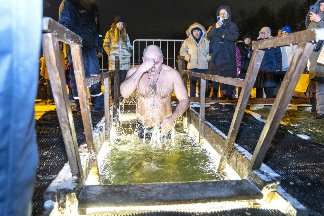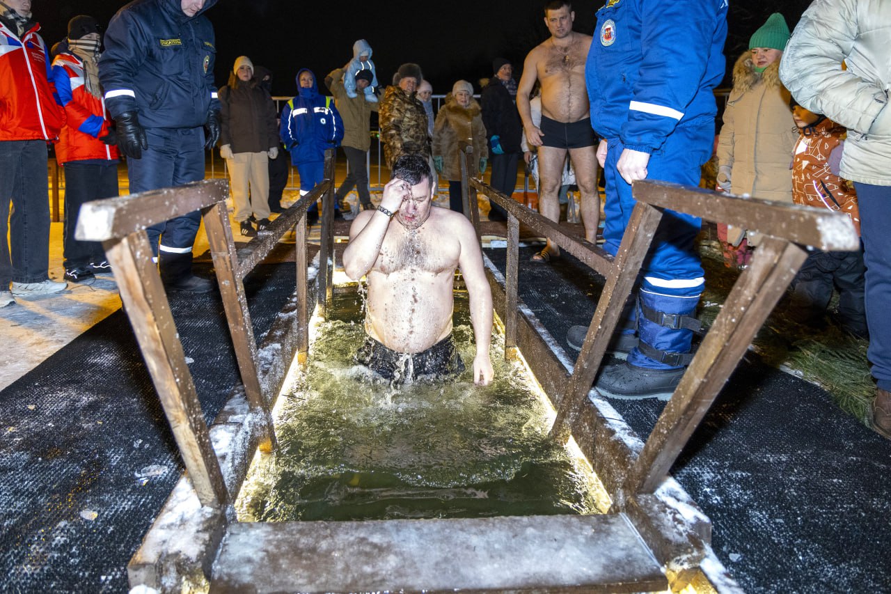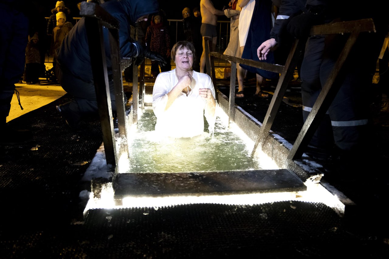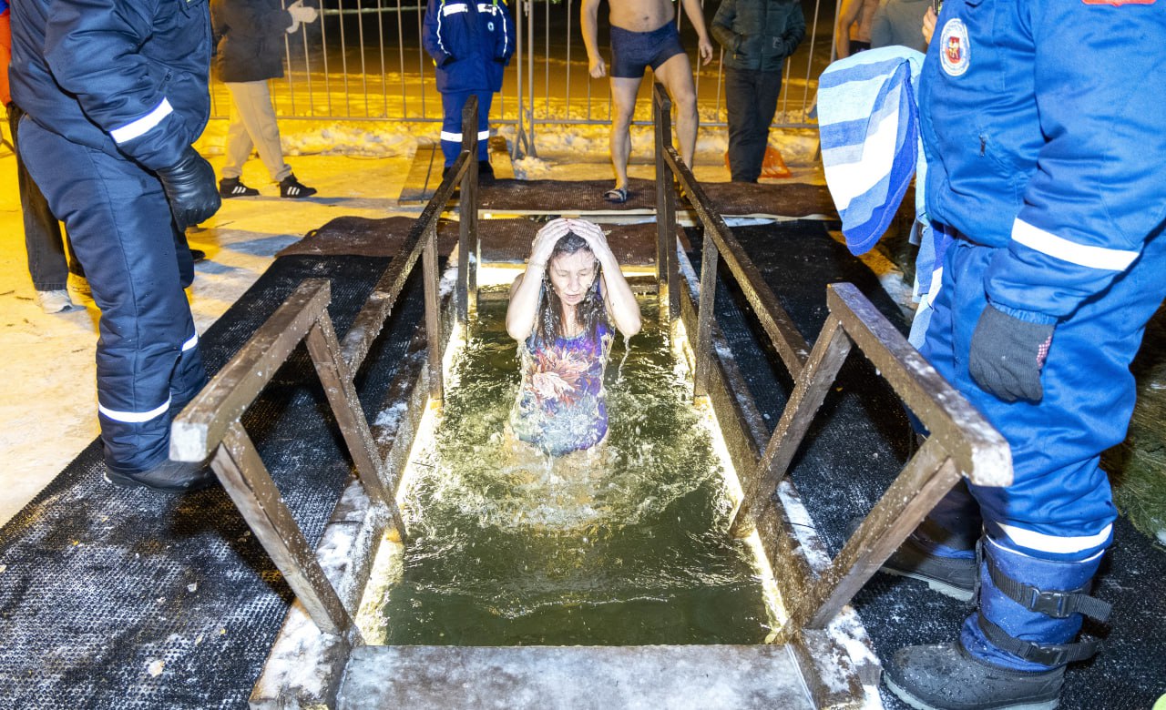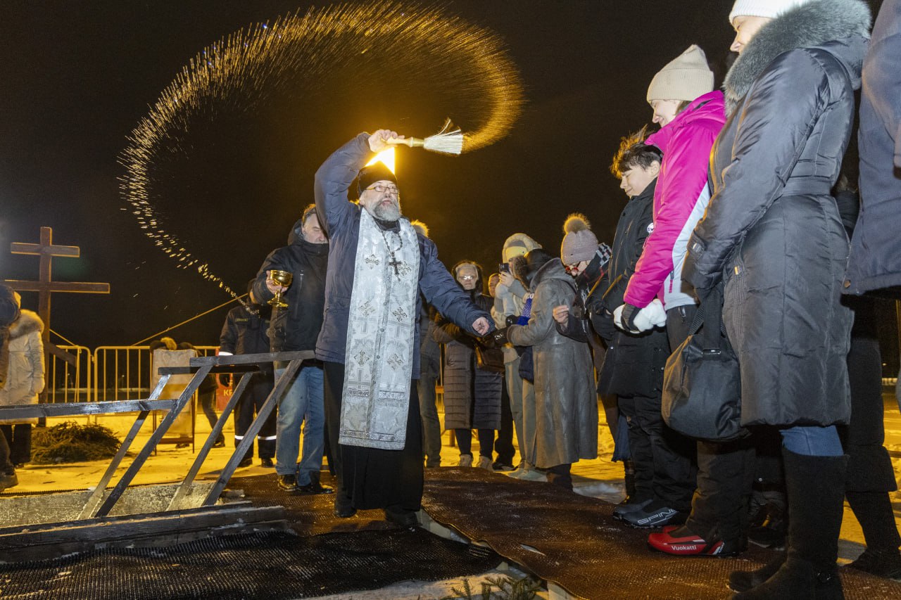 Воду освятили, после чего все желающие смогли окунуться в ледяную купель.