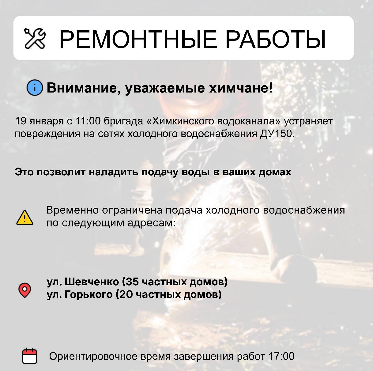 Горячая линия г.о. Химки: +7 495-793-01-01 ; ОАО "Химкинский водоканал": 8 (495) 575-06-36.