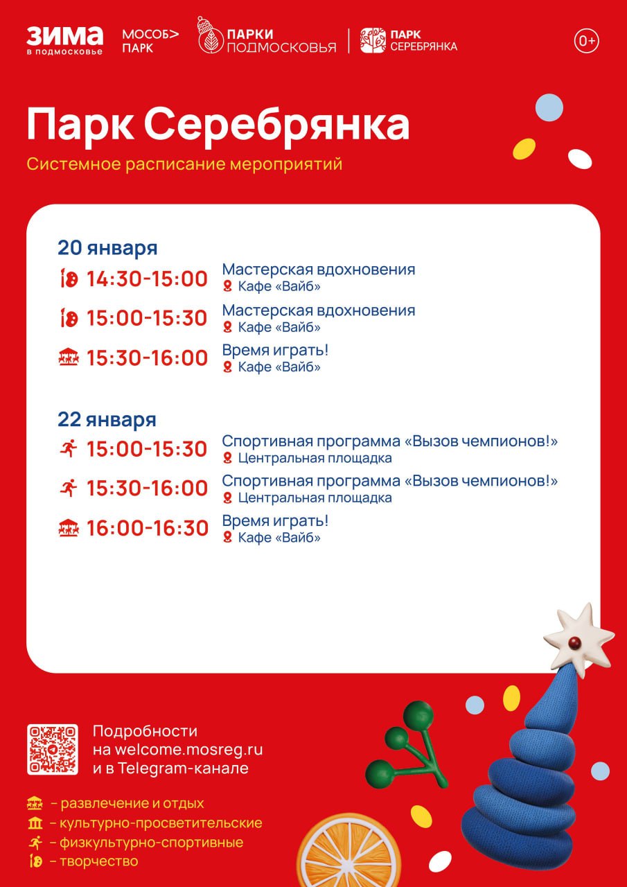 Здесь каждый найдёт формат по душе — спокойное творчество, активные игры или заряд бодрости на свежем воздухе. Расписание мероприятий в парках округа на текущую неделю в афишах.