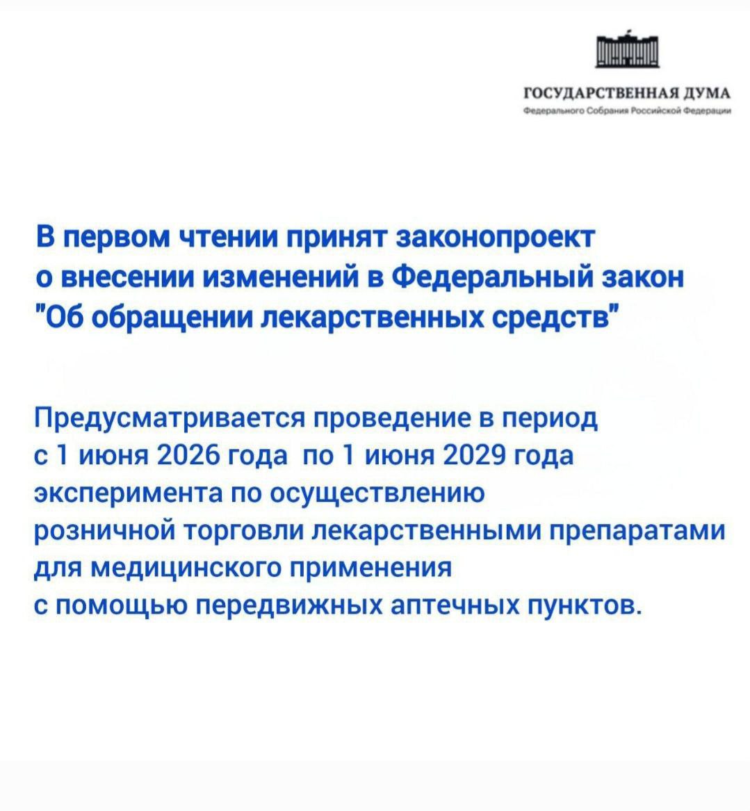 Лекарства — в каждый удаленный населенный пункт. В первом чтении принят законопроект о создании сети передвижных аптечных пунктов. Это гарантия доступности жизненно важных лекарств для тысяч жителей сел и труднодоступных территорий. С июня 2026 года стартует трехлетний эксперимент.