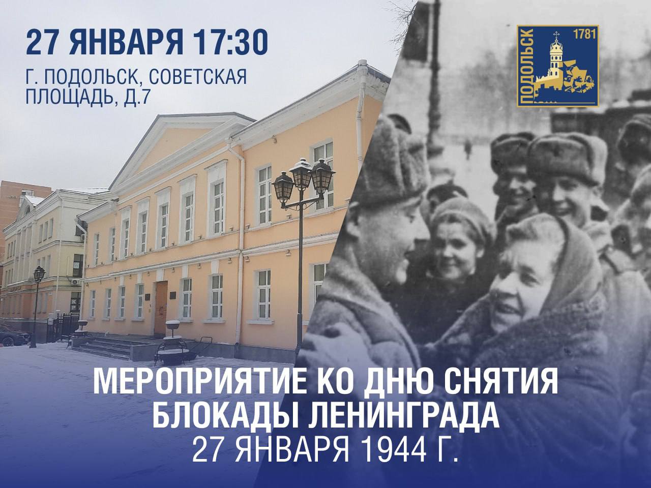 Подольский краеведческий музей приглашает на мероприятие ко Дню снятия блокады Ленинграда