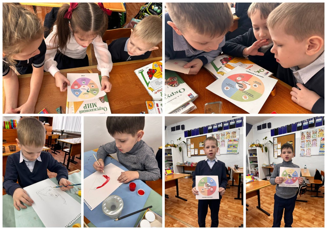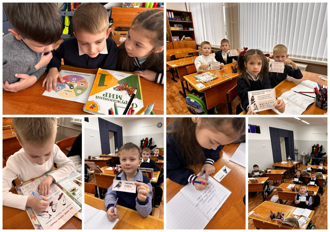 Особенно увлекательным выдался урок окружающего мира, на котором ребята работали в группах. А на уроке изобразительного искусства юные художники создавали рисунок, на котором изображали зимующую птицу - снегиря.