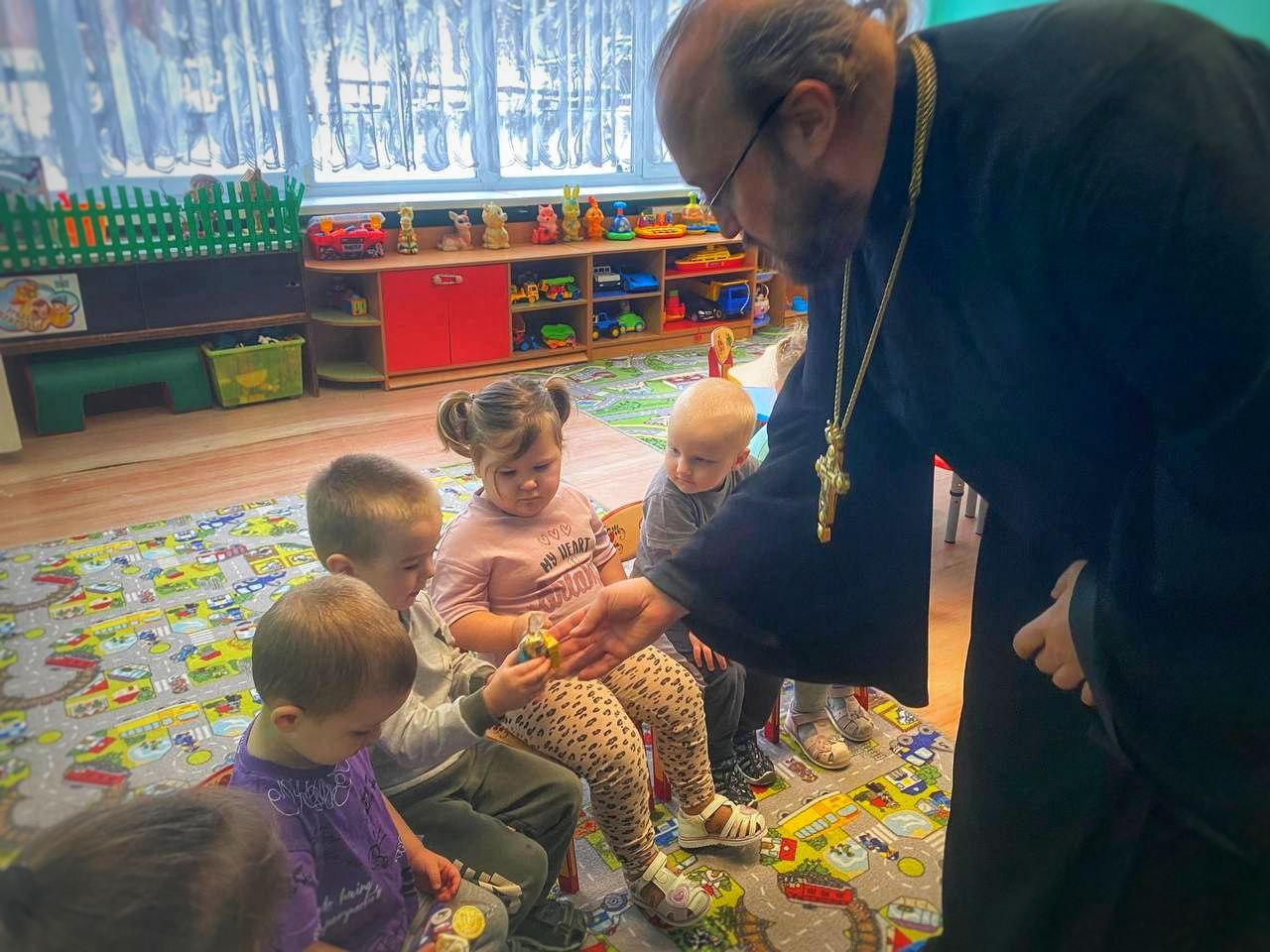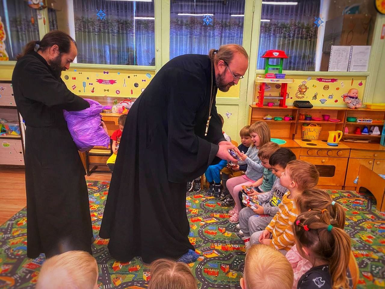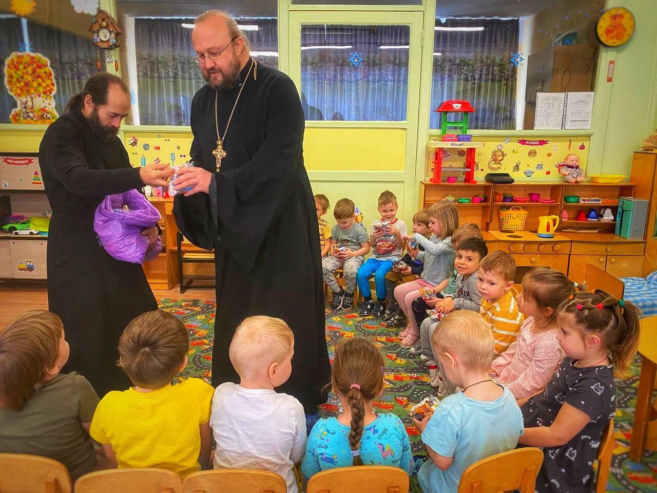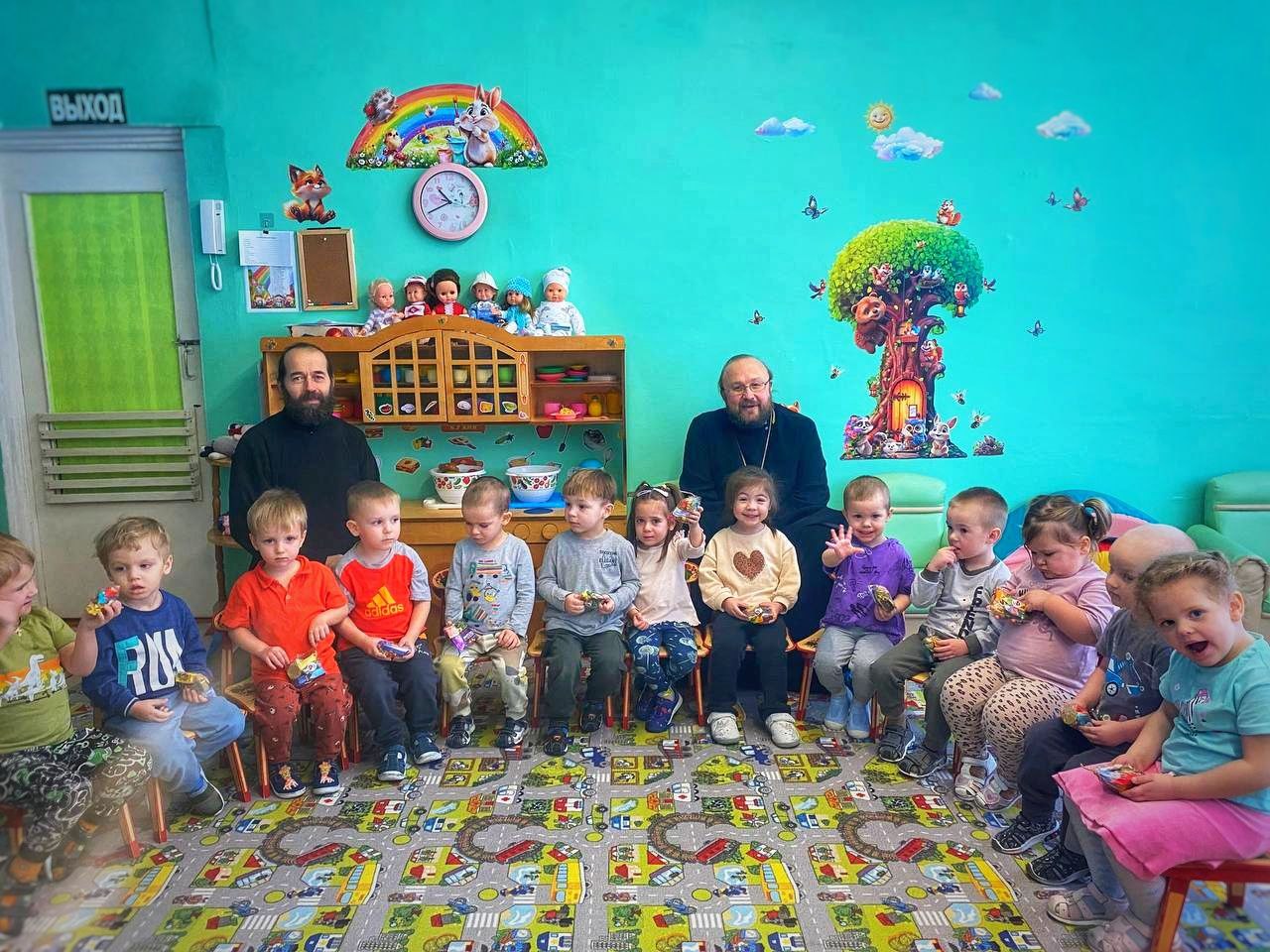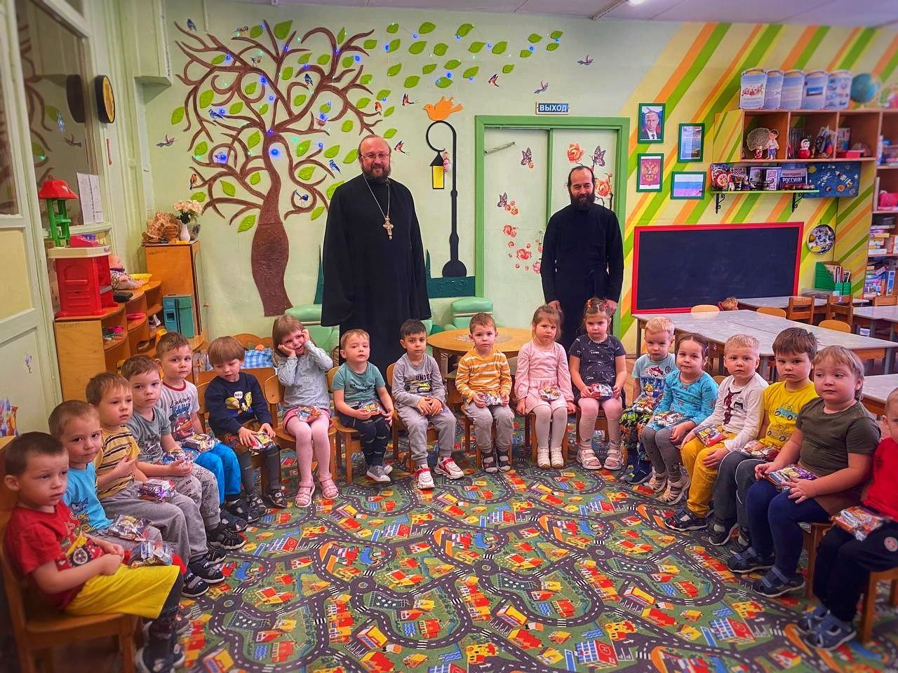 В рамках реализации муниципального проекта по духовно-нравственному и гражданско-патриотическому воспитанию дошкольников «Добрый сад» дошкольное отделение гимназии №2 м.о. Чехов (здание 3, п. Васькино) посетили настоятель Храма Рождества Пресвятой Богородицы в посёлке Васькино - протоиерей Александр Смолиевский и Клирик Богородицерождественского храма села Васькино - диакон Андрей Климушкин.