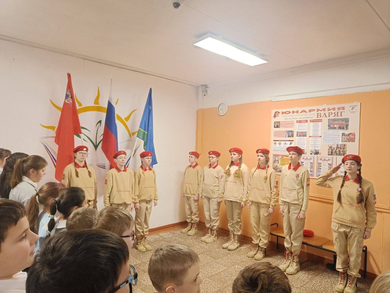 Почетное право выноса государственного флага предоставлено ученику 7г класса юнармейцу Градинар Марку.