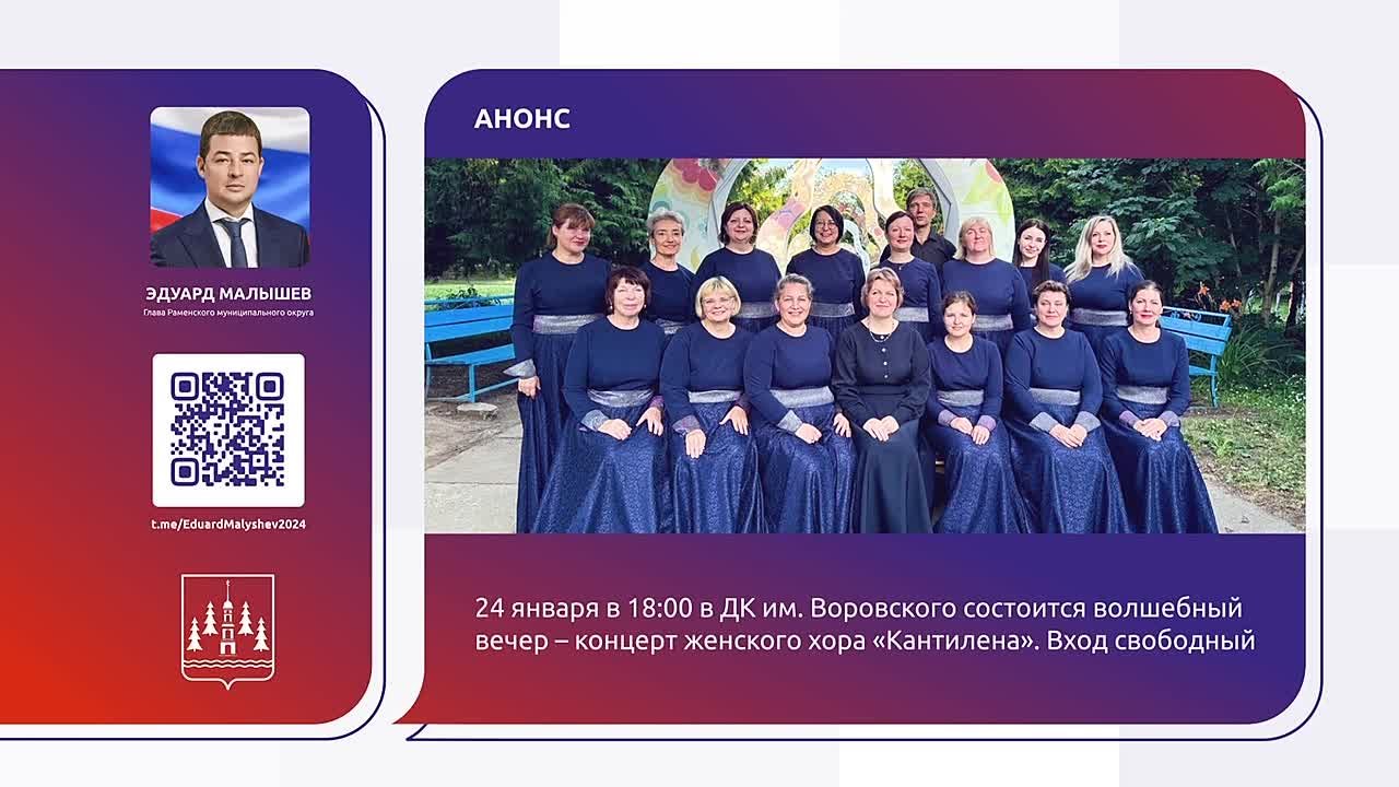 24 января в 18:00 в ДК им.Воровского состоится волшебный вечер – концерт женского хора «Кантилена». Вход свободный