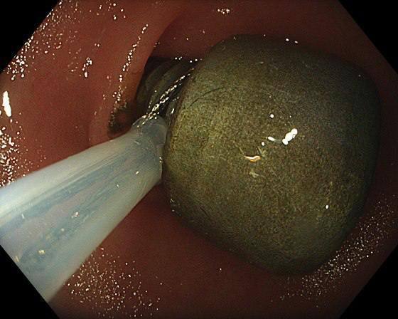 Рентген показал крупное инородное тело в желудке. Врачи провели малотравматичную эндоскопическую операцию — без разрезов, с помощью специальной петли. Процедура заняла около 15–20 минут.