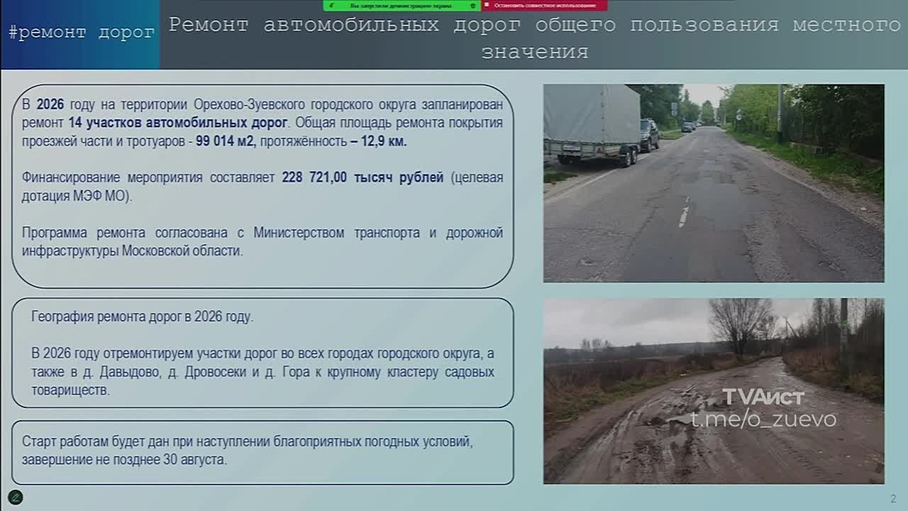 Также отмечу, что помимо капитального будем проводить текущий и локальный ремонт в городах и малых населенных пунктах.