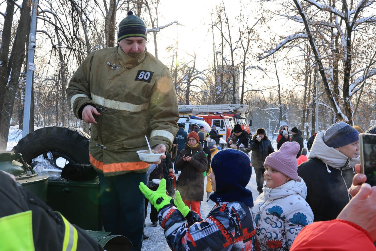 В завершение мероприятия всех участников угостили горячей кашей и сладким чаем из полевой кухни.