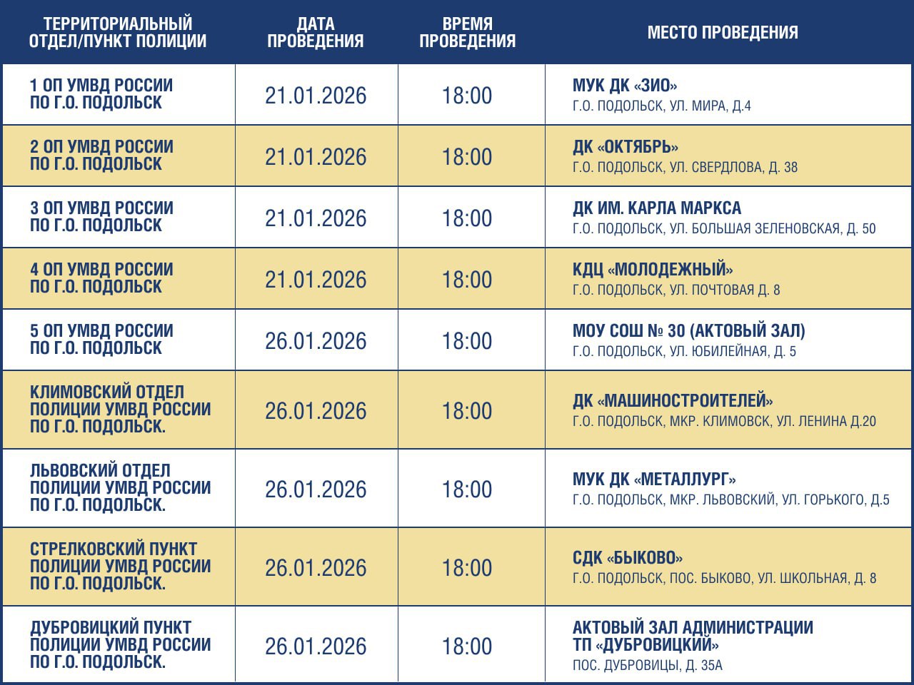 Приглашаем вас посетить отчеты участковых уполномоченных полиции Управления Министерства внутренних дел России по Городскому округу Подольск о проделанной работе за 2025 год.
