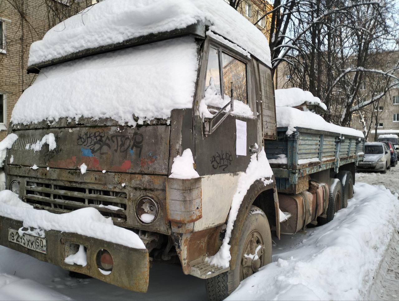 Камаз серого цвета В295ХК50: г. Пушкино, проезд Розанова, д. 7