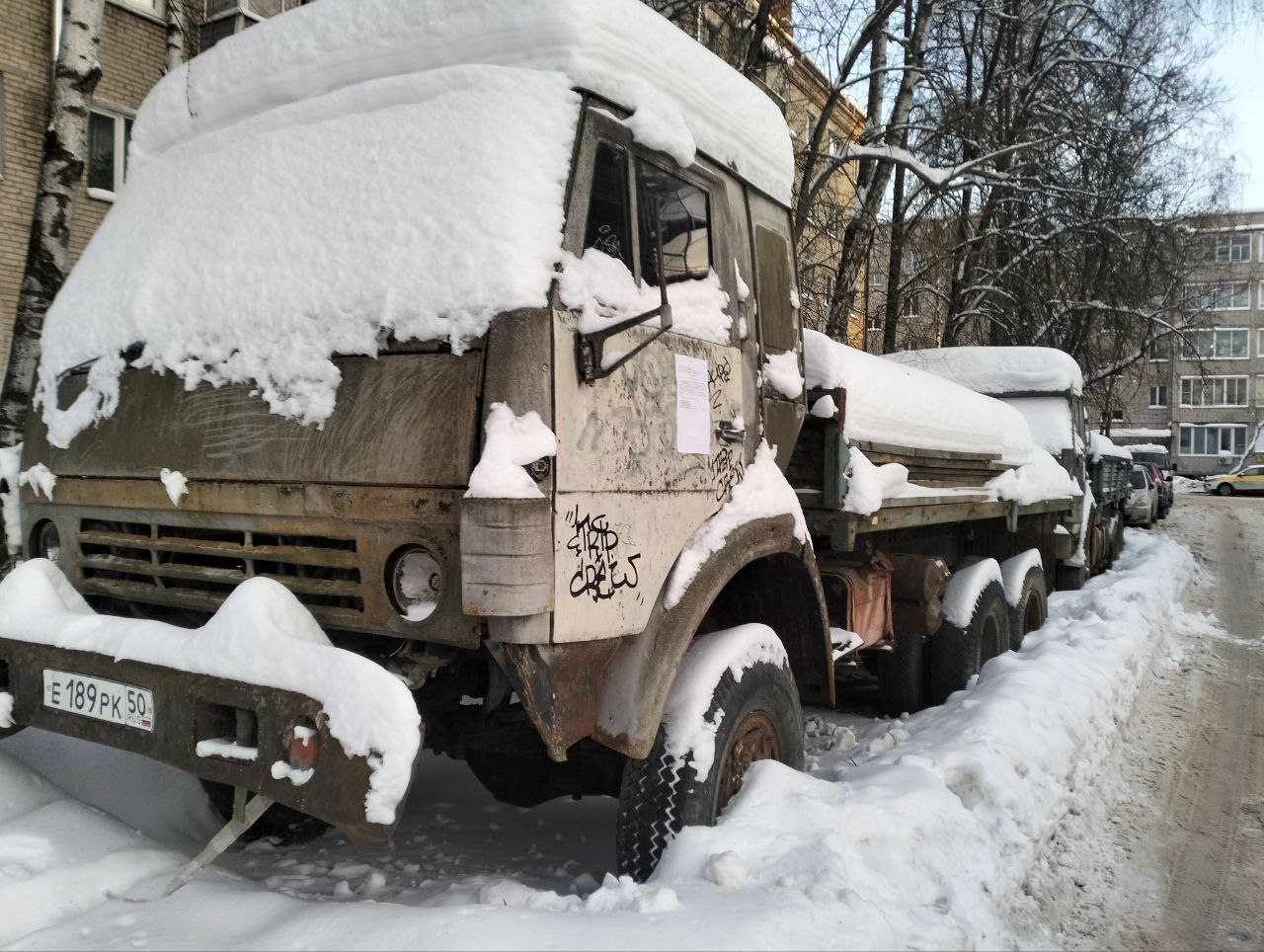 Камаз серого цвета Е189РК50: г. Пушкино, проезд Розанова, д. 7