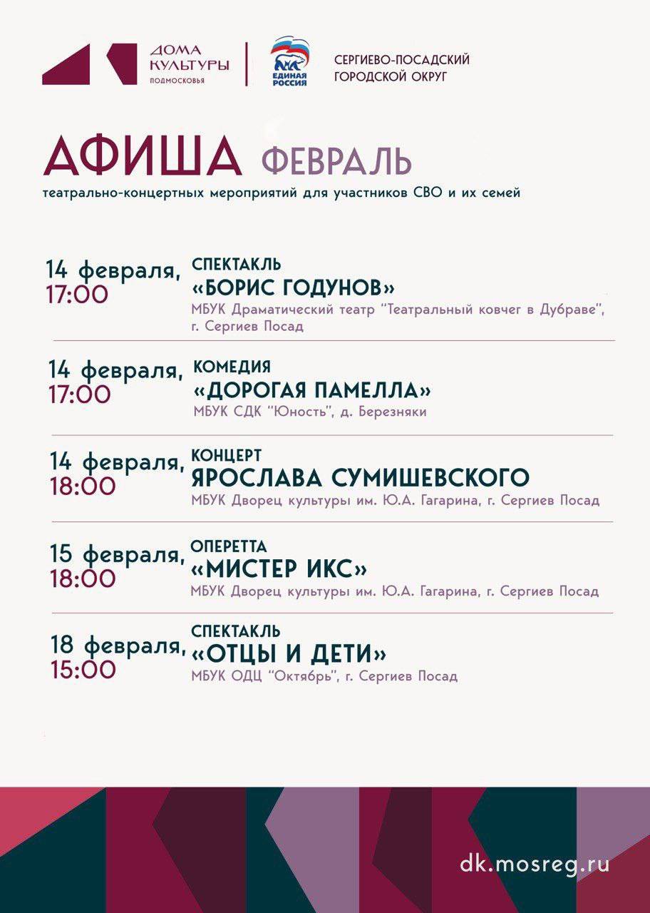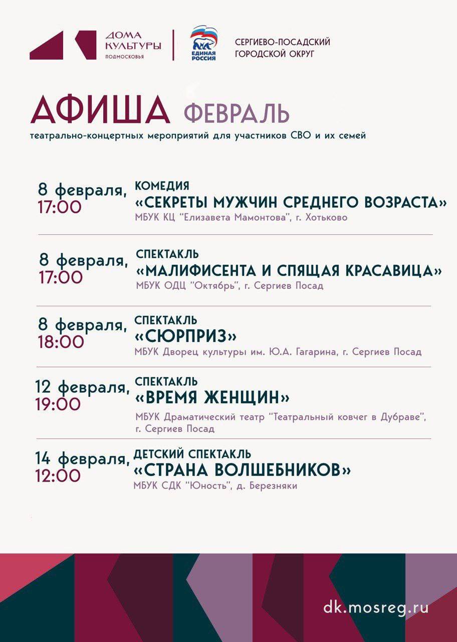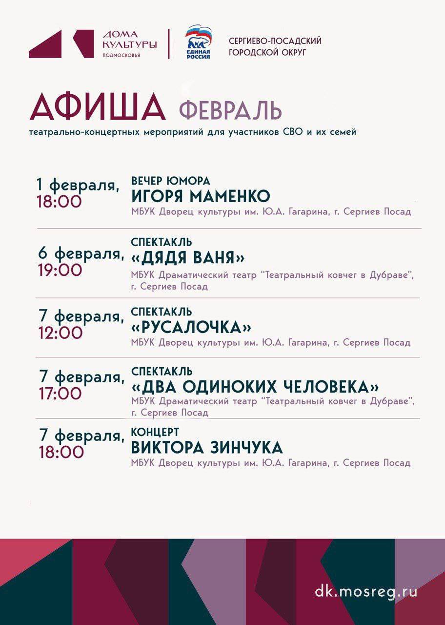 Культурно-досуговые учреждения округа и партия «Единая Россия» приглашают на театрально-концертные мероприятия в феврале