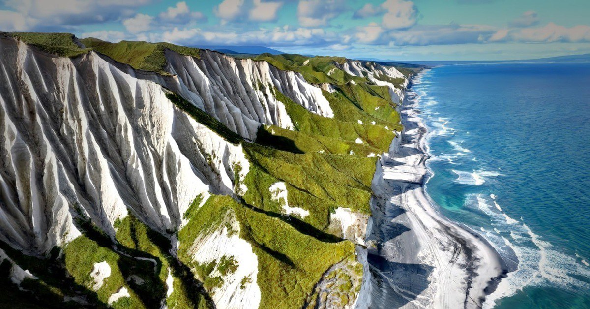 Остров Итуруп также известен своими белыми скалами. Расположенные недалеко от деревни Рейдово, они находятся всего в двадцати километрах по тропе от Рейдово до Белых скал и Ветреного перешейка.