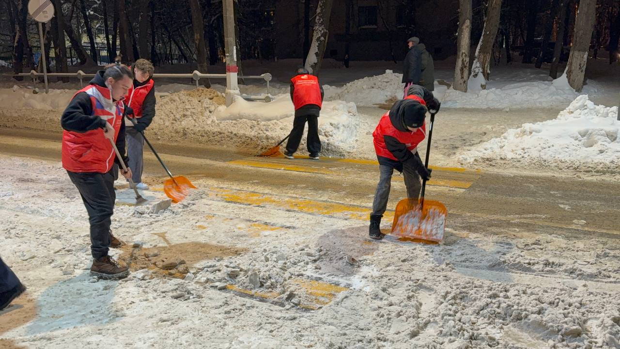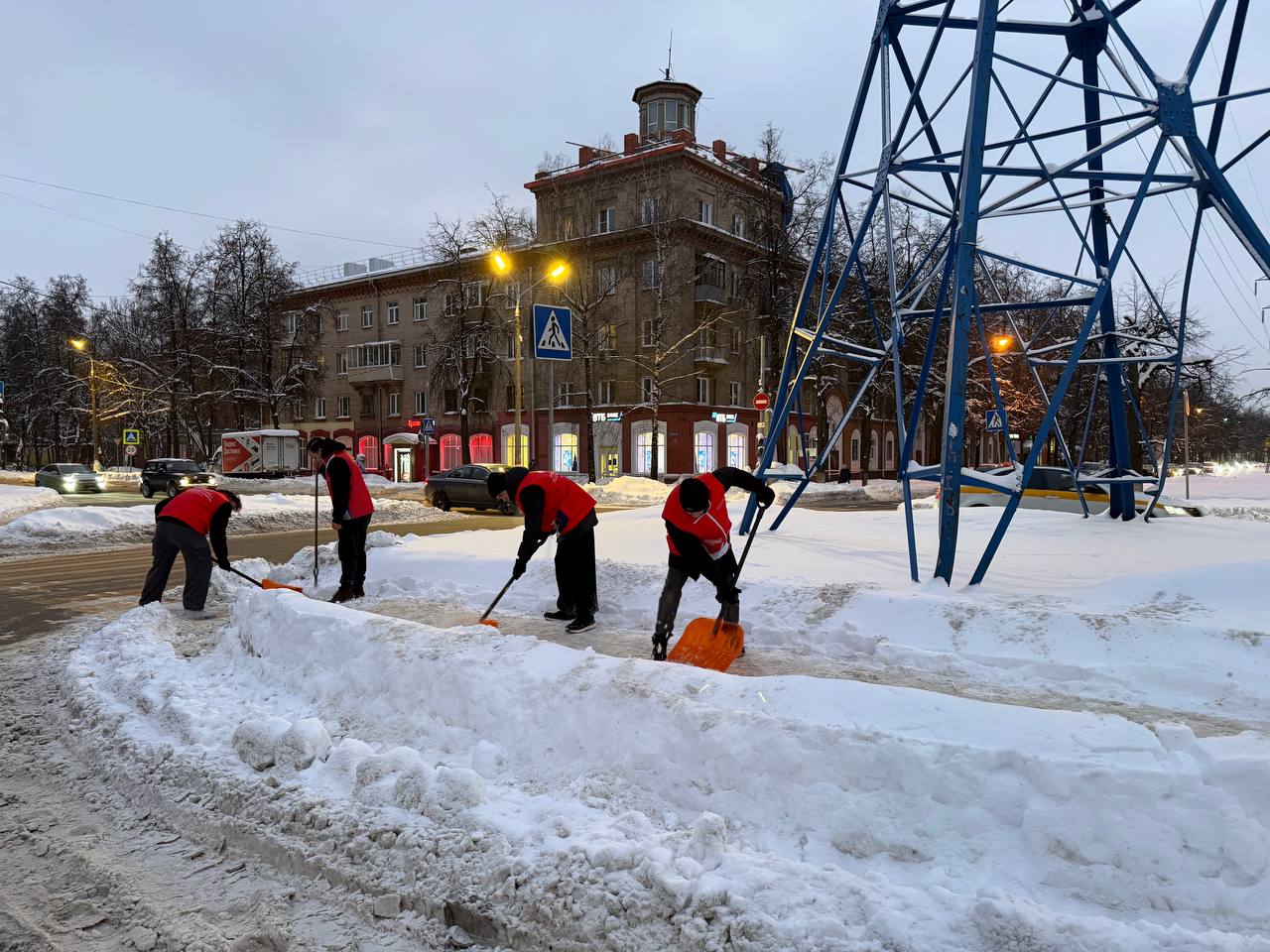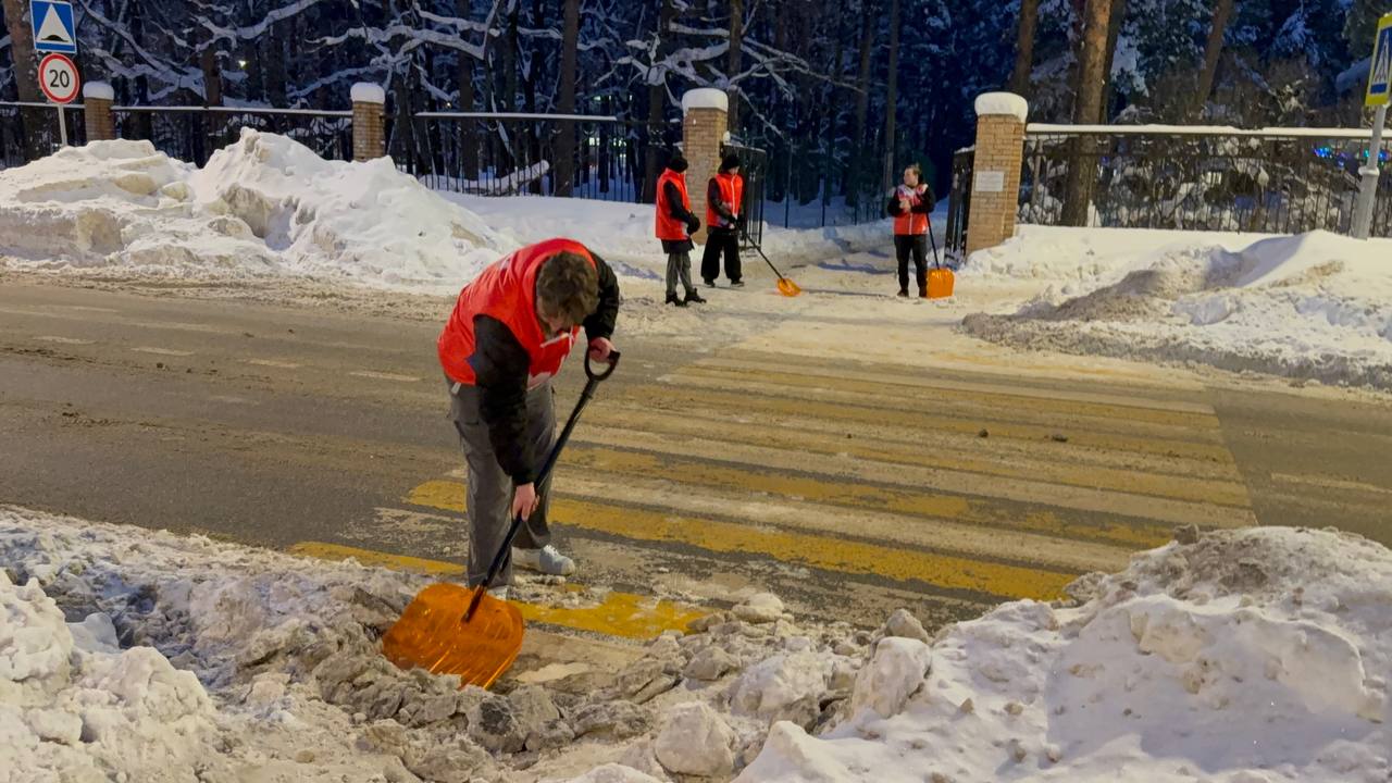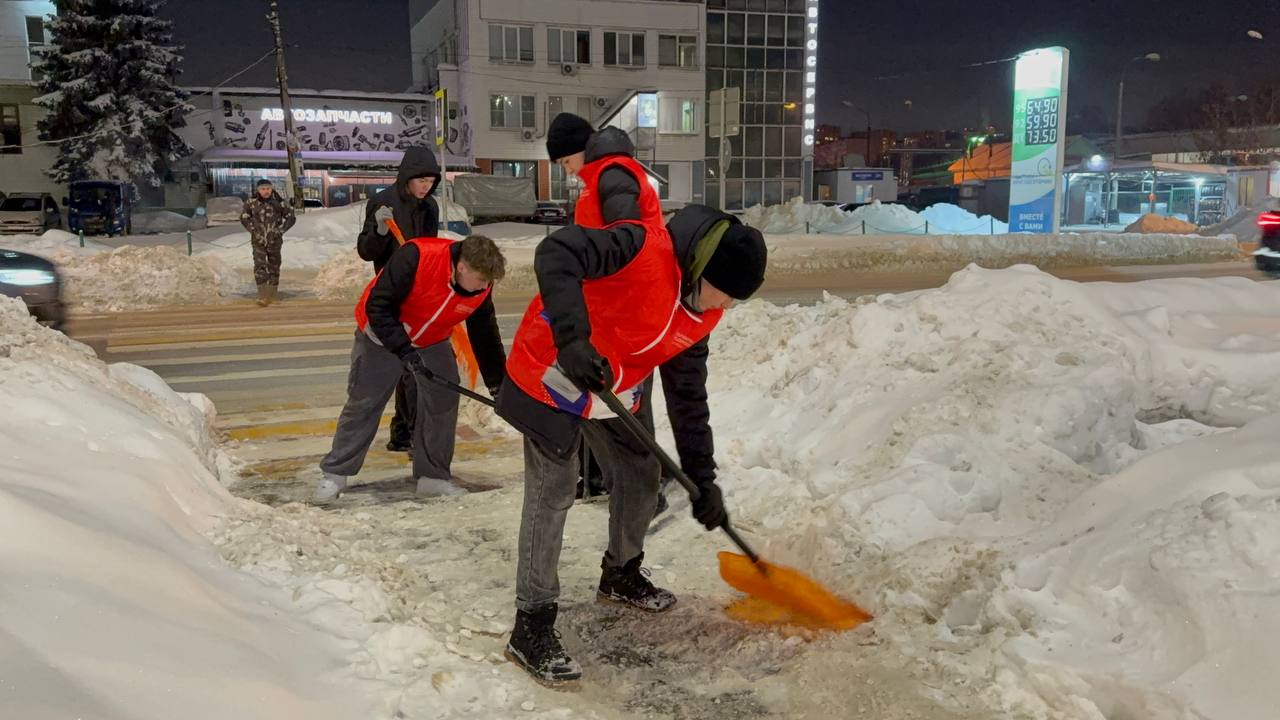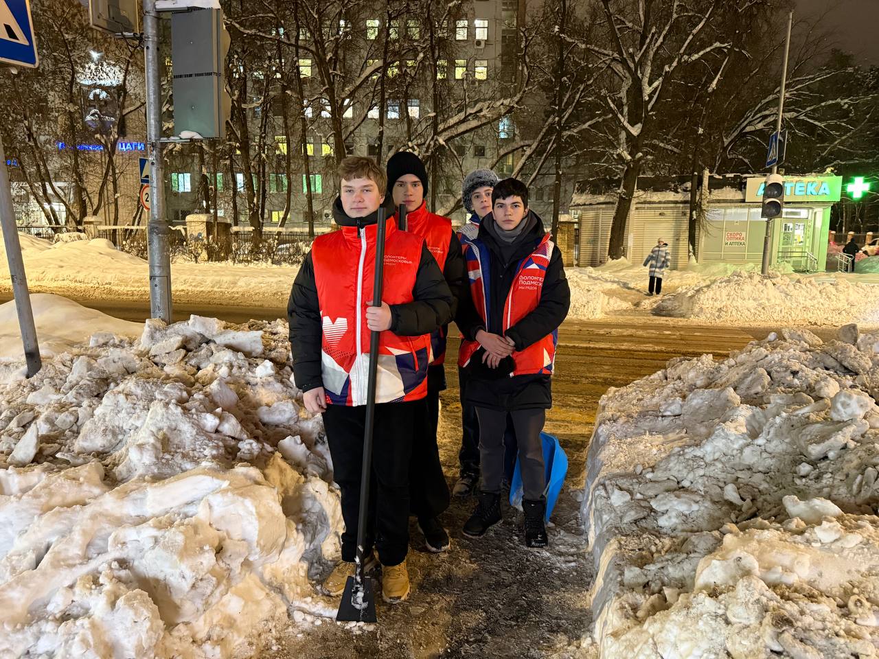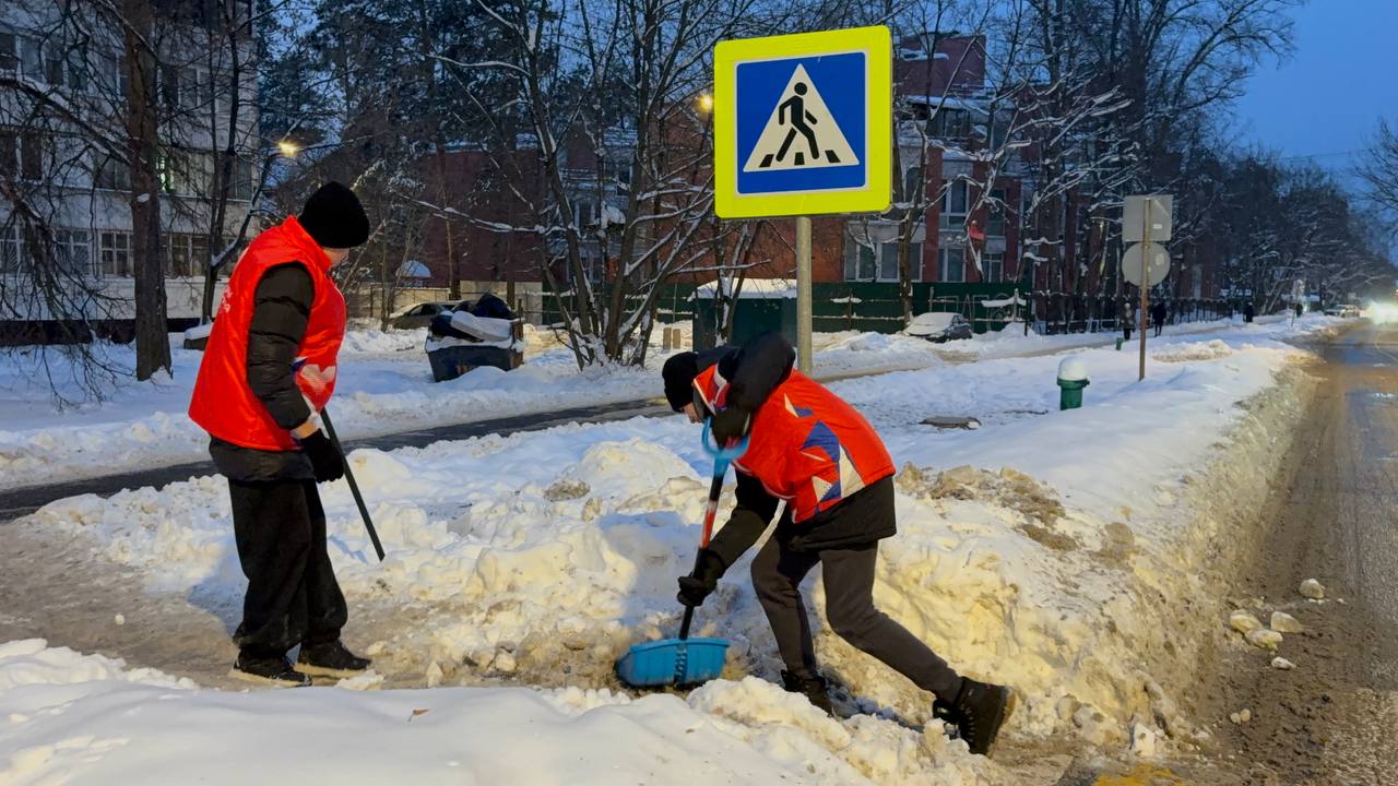 Ребята из местного отделения «Волонтеров Подмосковья» продолжают помогать с уборкой снега на территории города.
