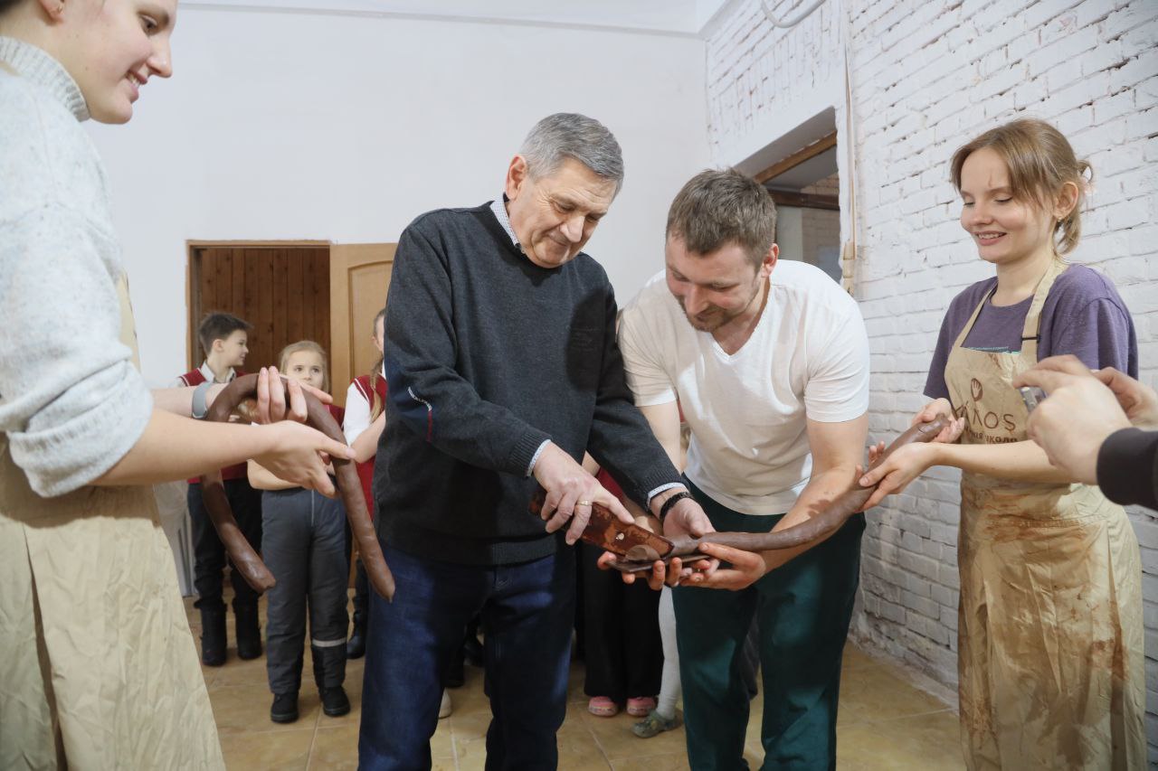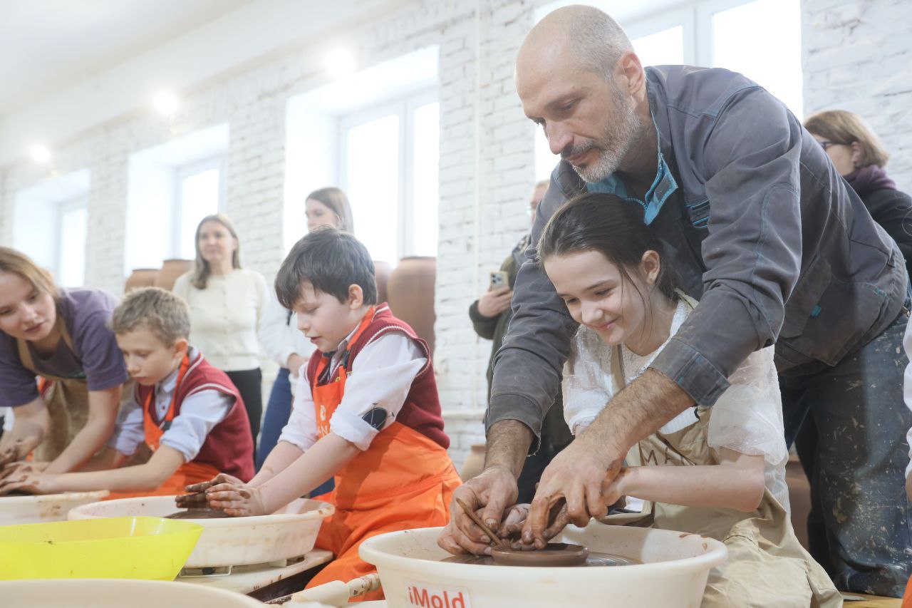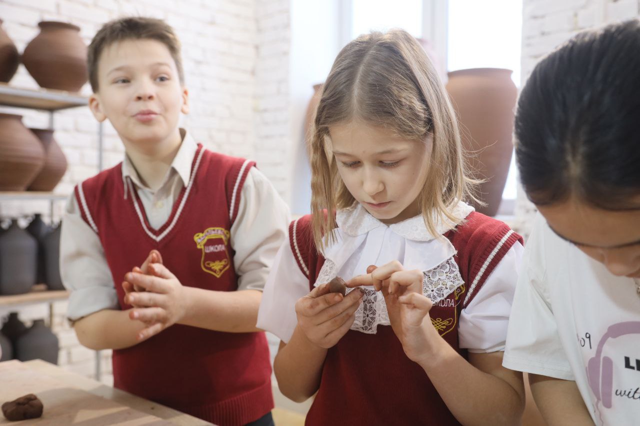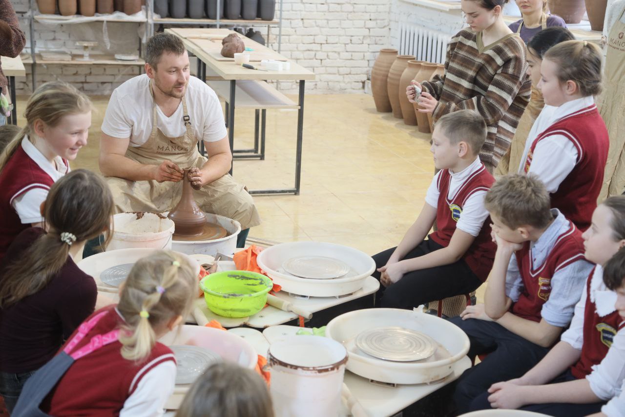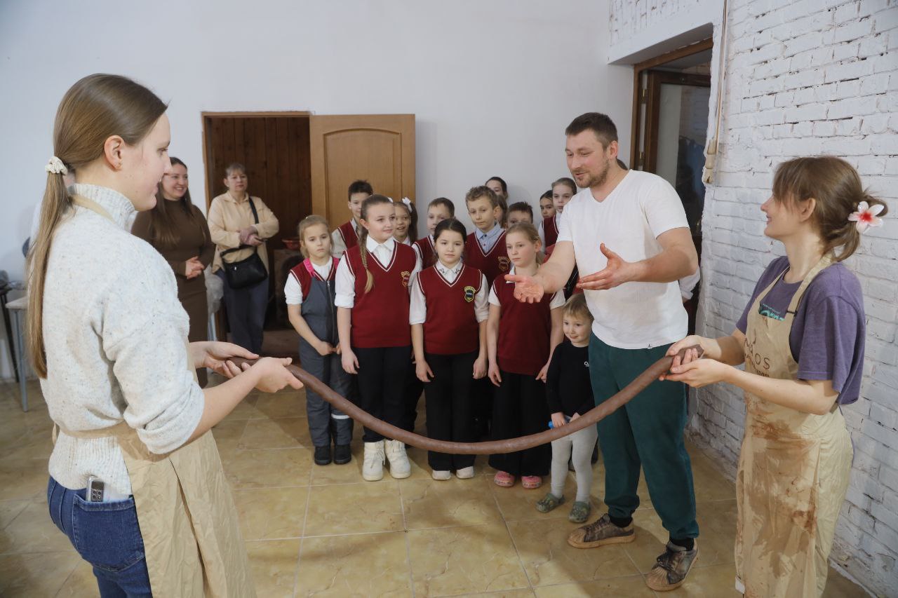 Первыми гостями стали ученики четвёртых классов школы села Васильевское. На мастер-классе они узнали о происхождении глины, историю гончарного дела, а также своими руками изготовили и украсили тарелки.