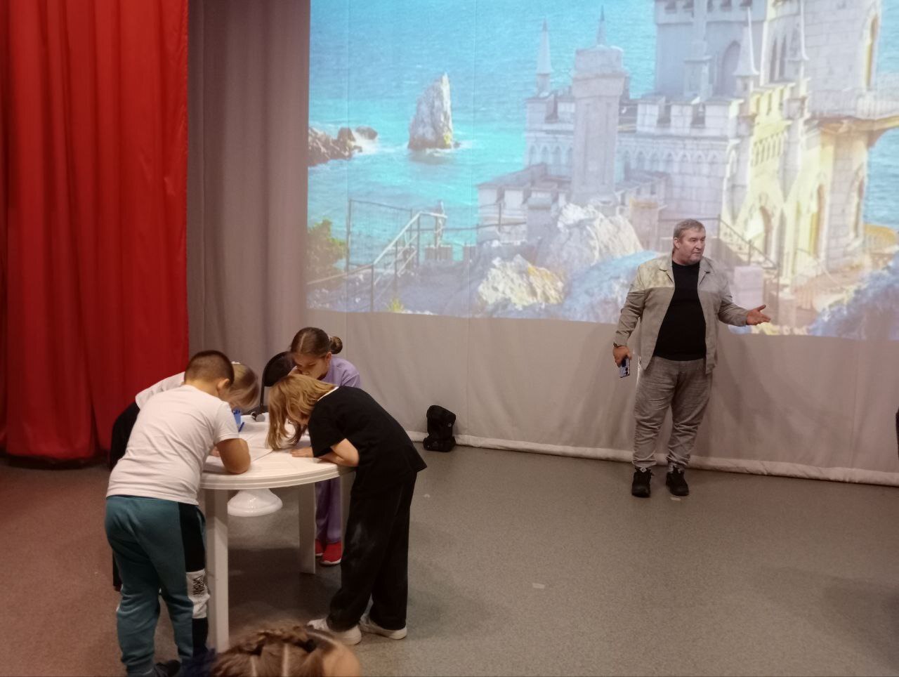 Программа мероприятия была построена в интерактивном формате. Ведущий Андрей Хаминтов провел для ребят увлекательный экскурс по Крымскому полуострову, используя яркие визуальные материалы. Участники не просто слушали рассказ о достопримечательностях и героическом прошлом края, но и должны были фиксировать важные факты, чтобы позже применить их в интеллектуальном состязании.