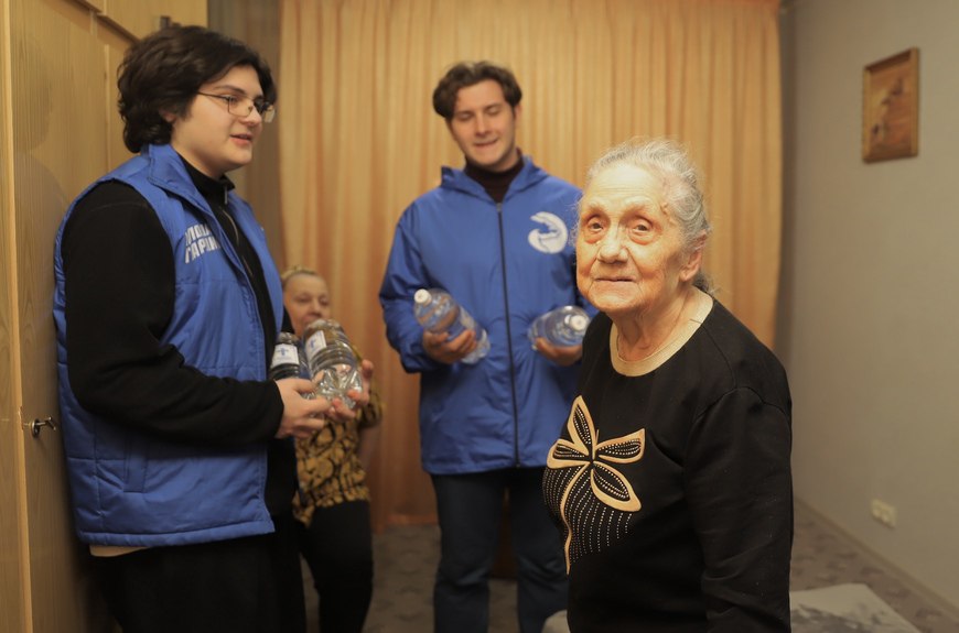 Помощь в доставке оказывают активисты «Молодой Гвардии», чтобы вода дошла и до тех, кто не смог прийти в храм.