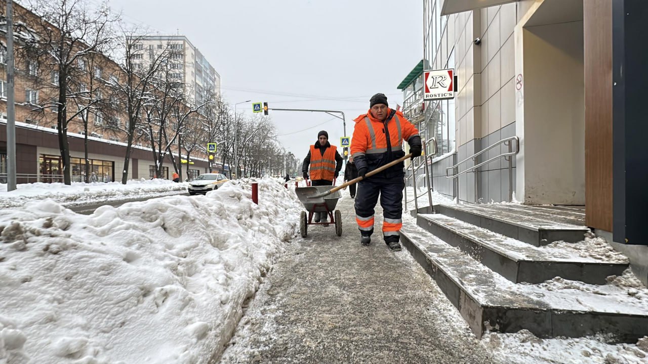 В обычный день на улицах Пушкино работают примерно 100 дворников, в снегопады — 120. Если осадки сильные, техника выходит уже в 5 утра, дворники — с 6, а в спокойную погоду работа начинается на час позже.