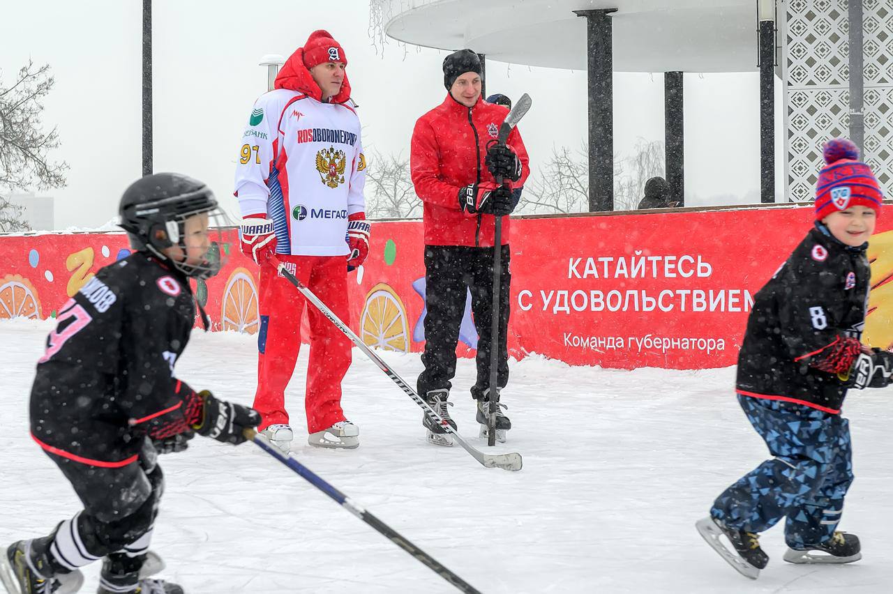 На мастерклассе от Олега Сапрыкина юные подольчане сыграли в хоккей с легендой НХЛ