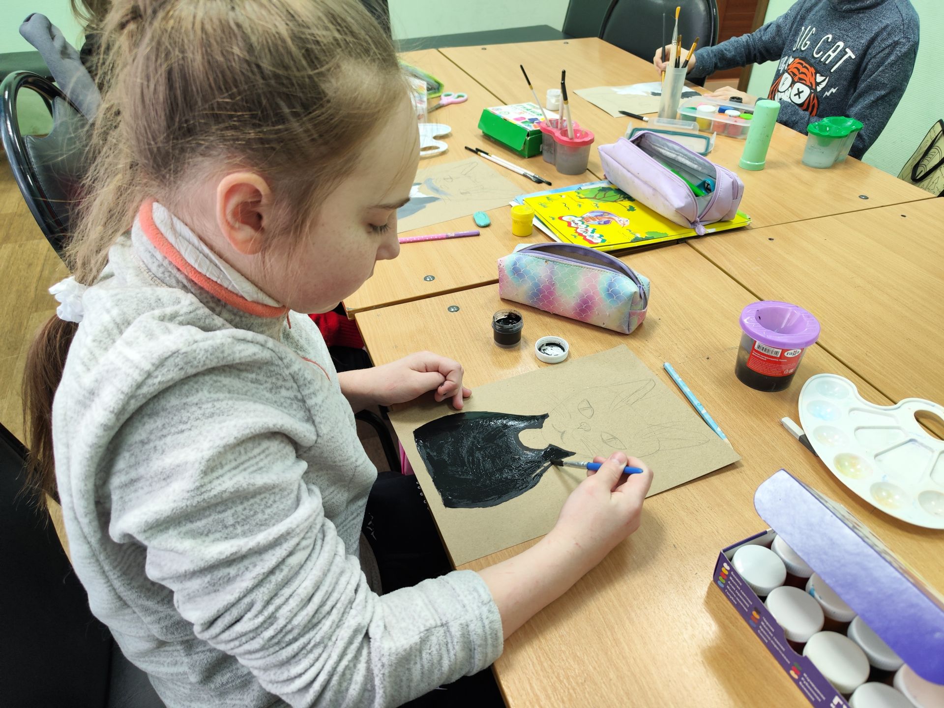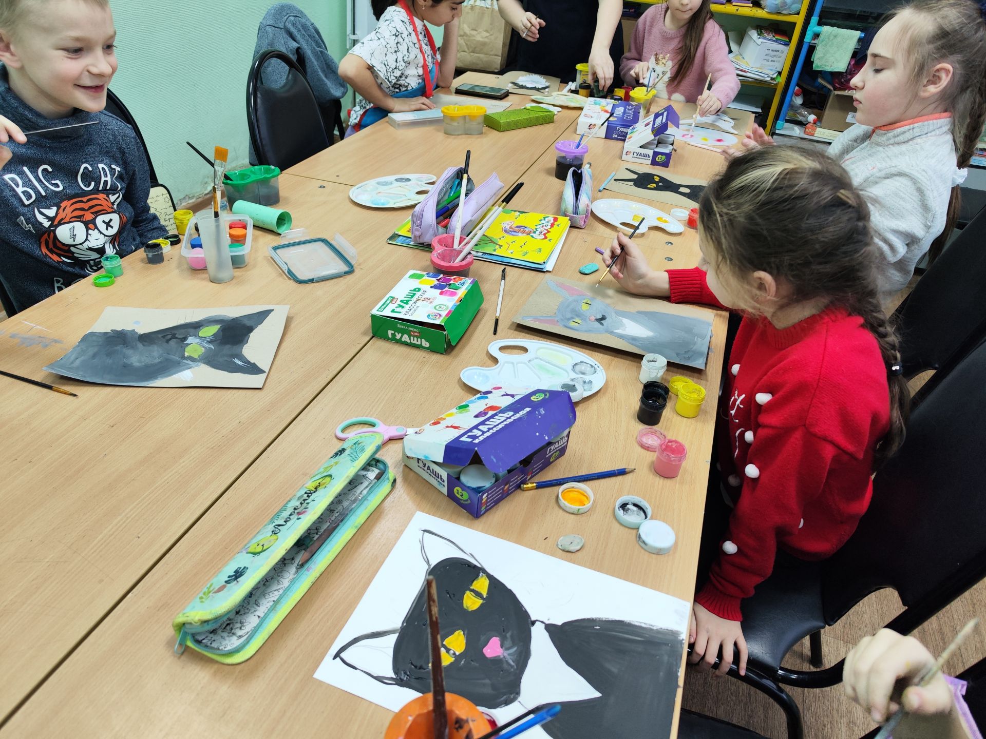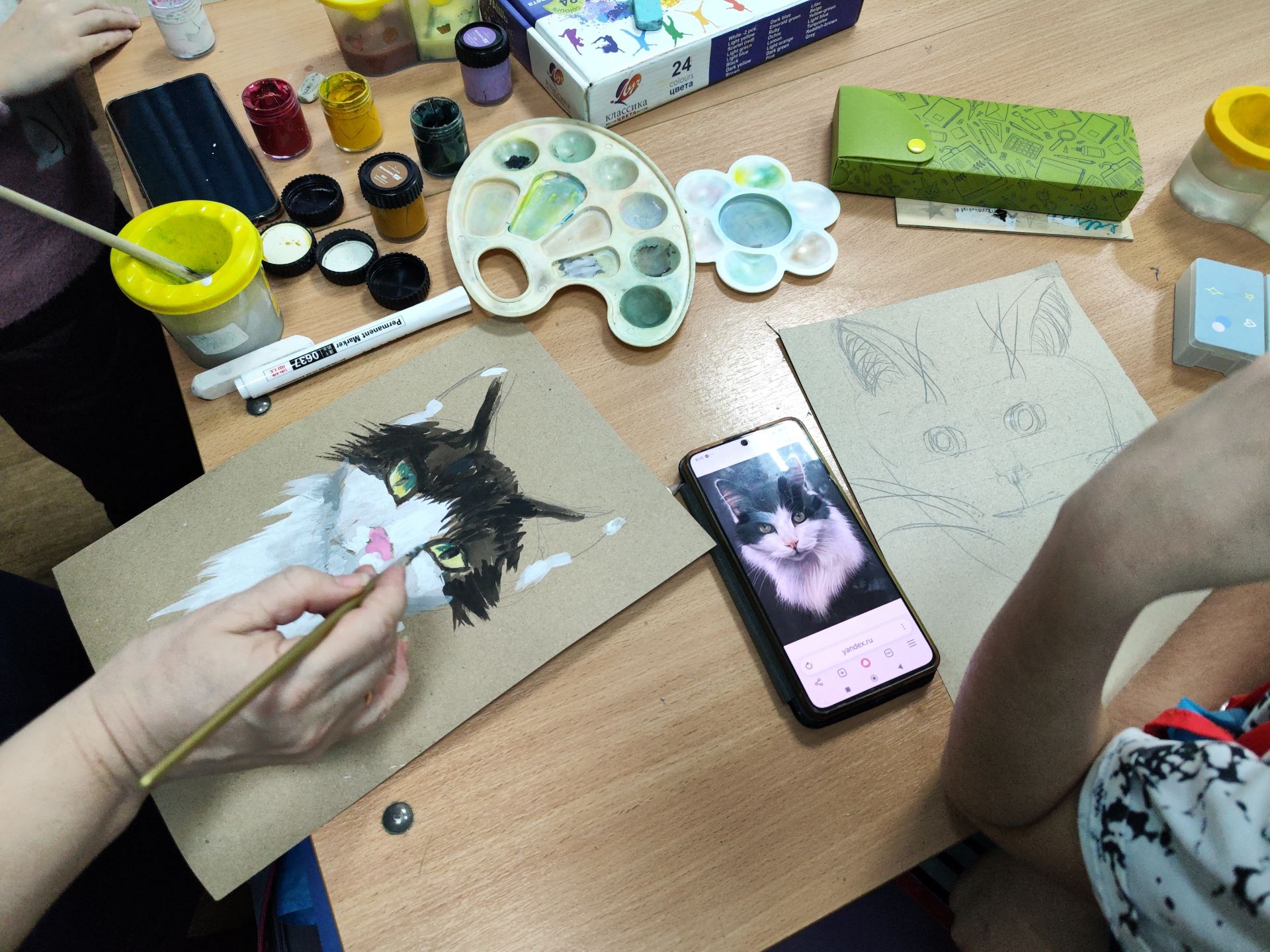 Ребята учились правильно выбирать материалы и создали портрет своего любимца от карандашного наброска до готового цветного изображения.