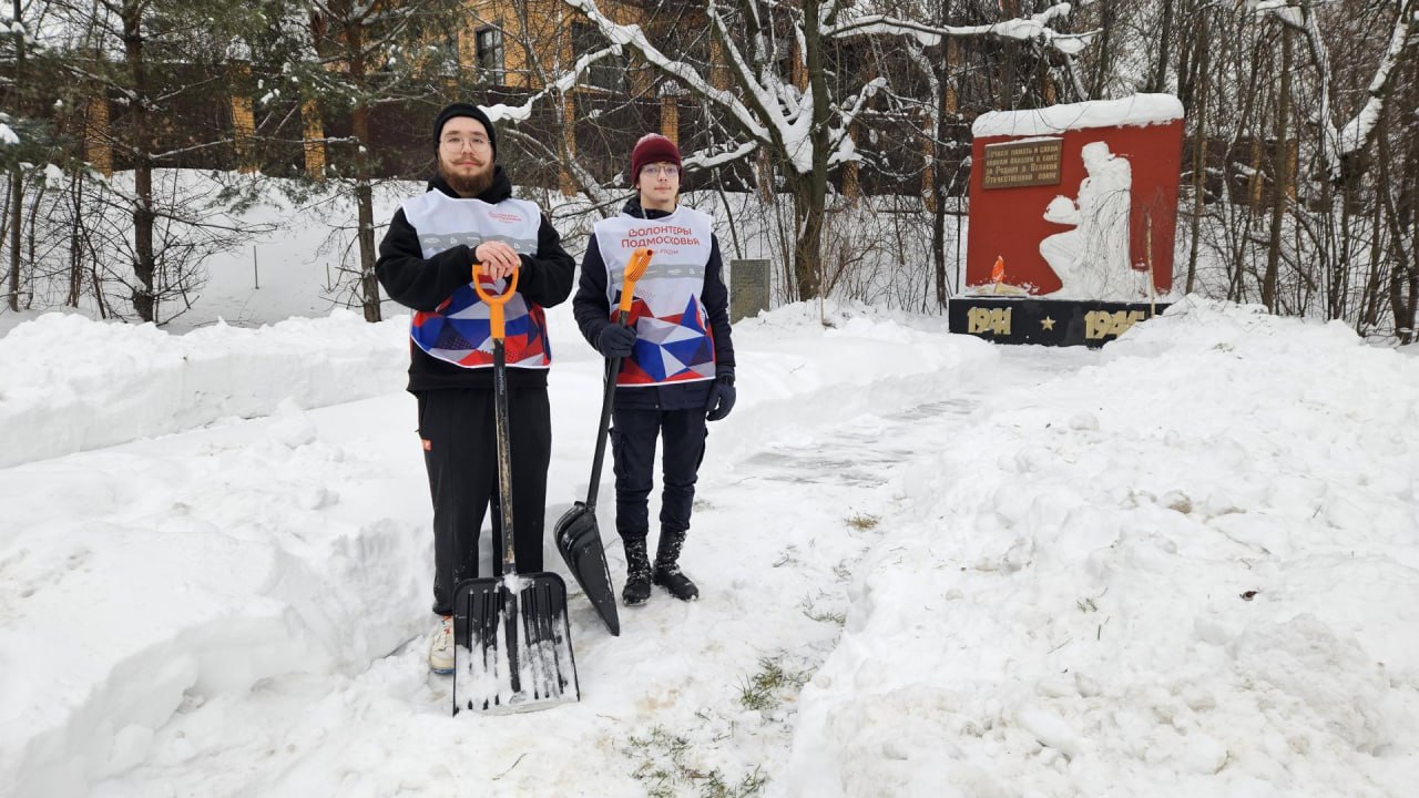 В Долгопрудном волонтёры почистили от снега военный мемориал