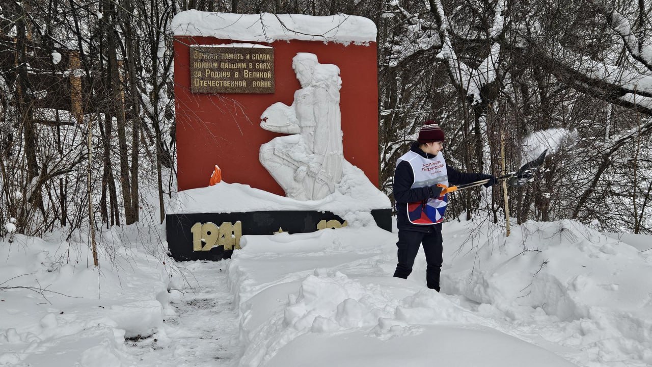 В то время как коммунальные службы сосредоточены на расчистке городских улиц и дворов, волонтёры Подмосковья из Долгопрудного берут на себя заботу о памятных местах.