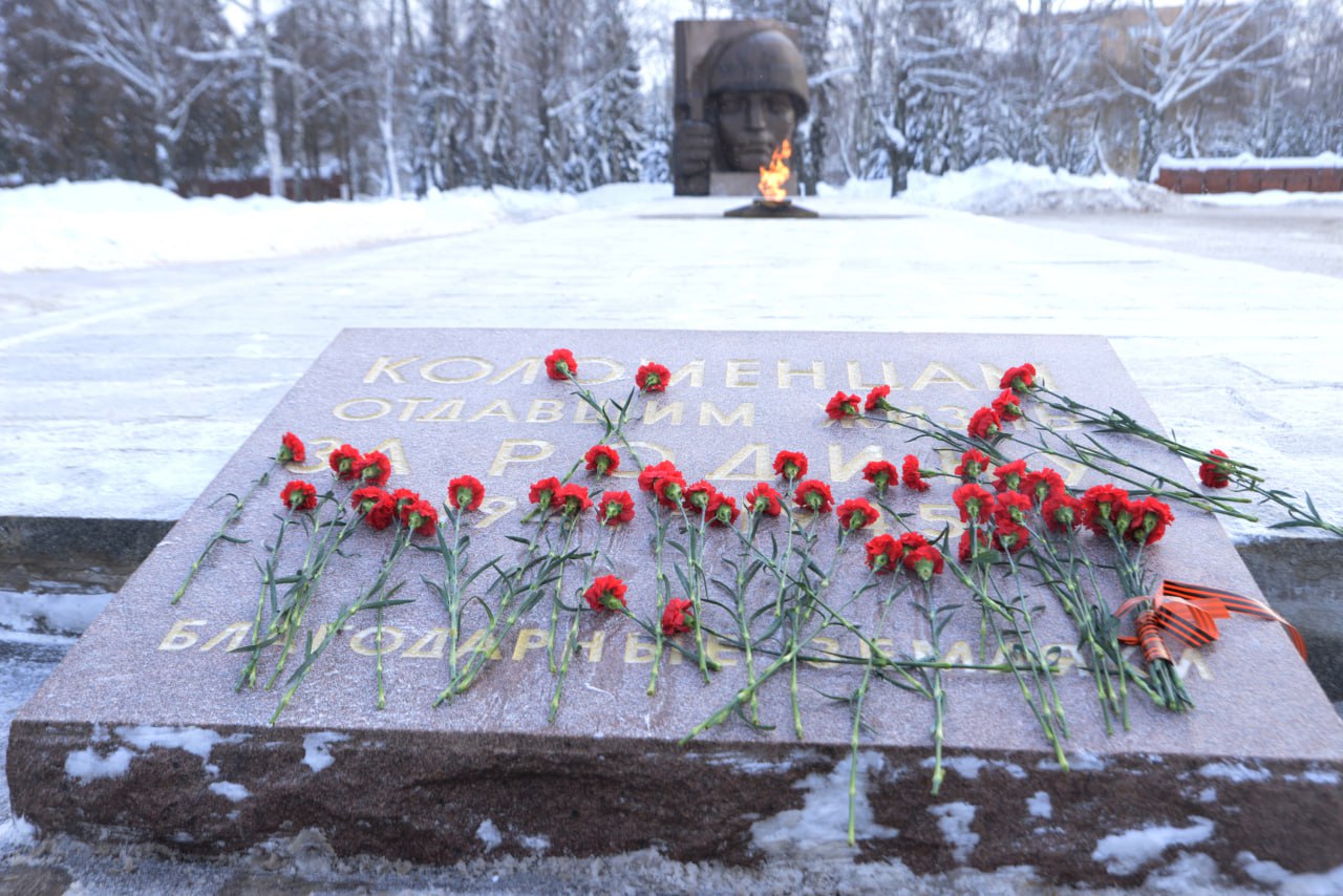 В день 84-й годовщины полного освобождения Подмосковья от немецко-фашистских захватчиков, в Мемориальном парке Коломны состоялась торжественная церемония возложения цветов к Вечному огню.