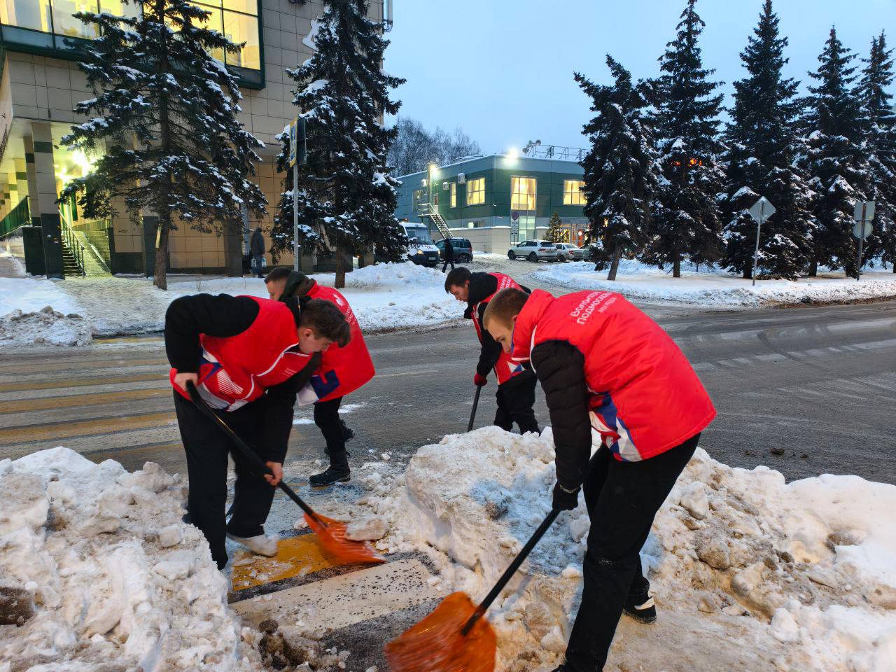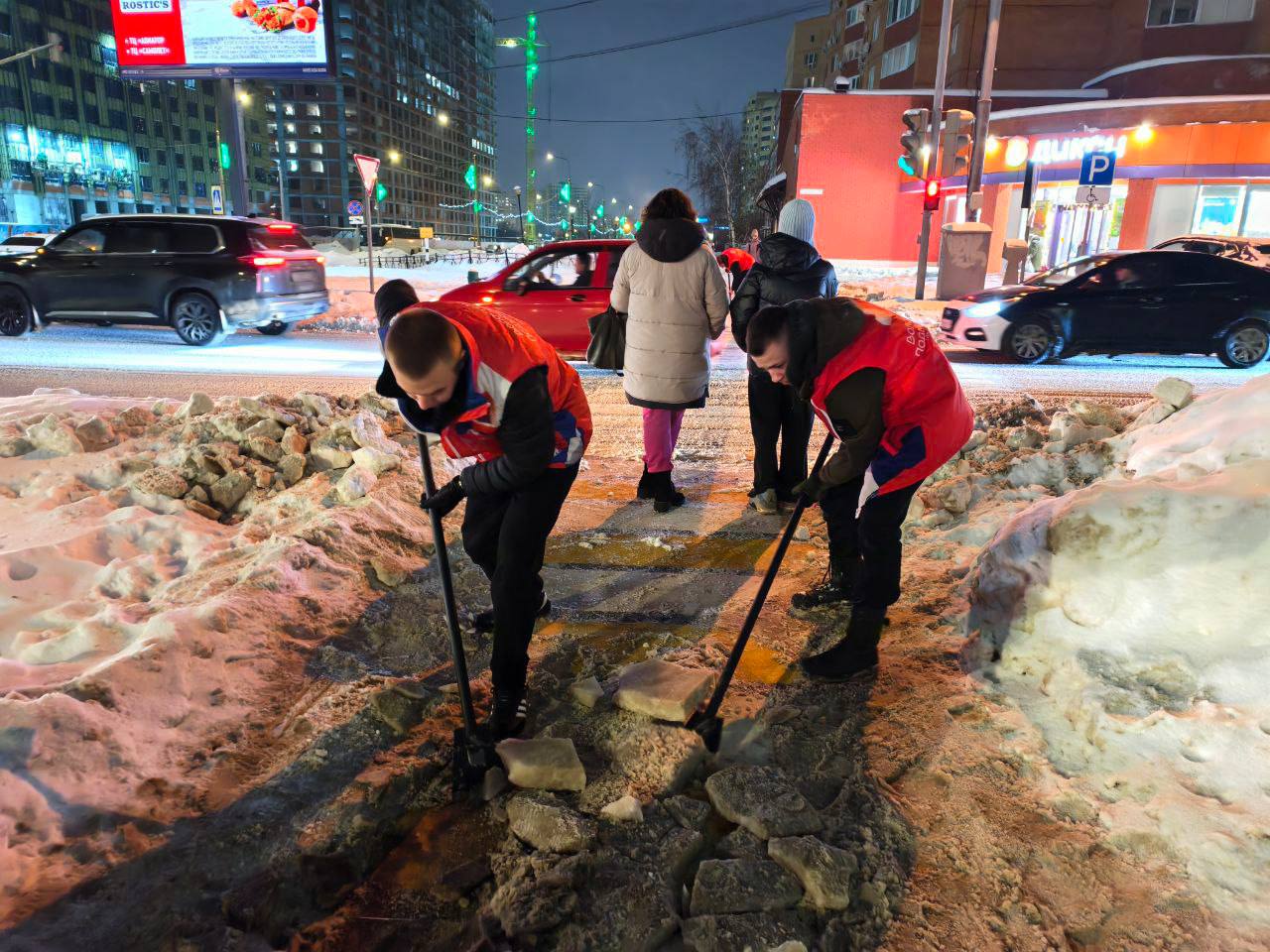Ребята расчистили от снега и льда пешеходные переходы на улицах Чкалова, Гудкова, Анохина и Лацкова.