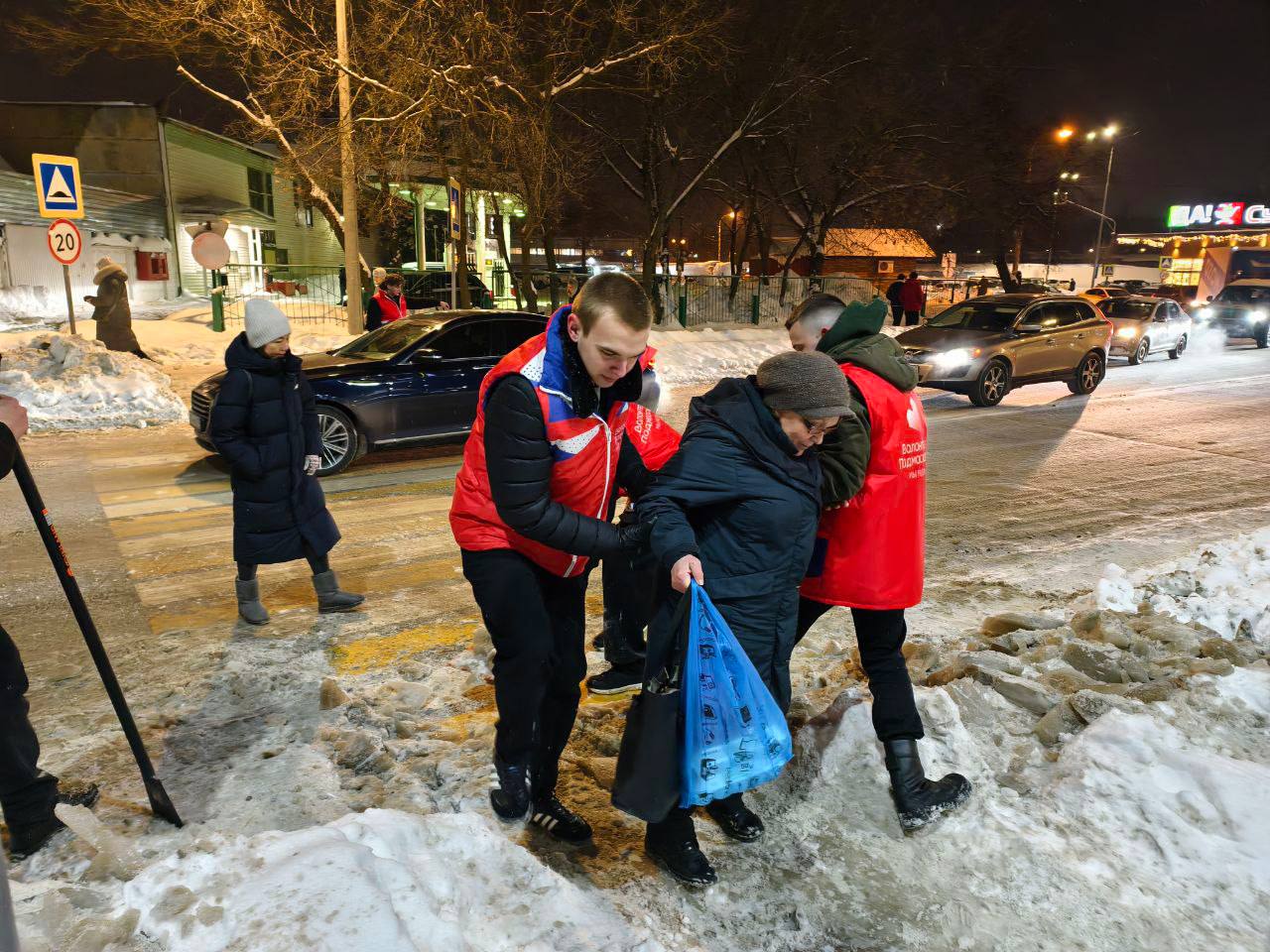 Команда жуковского отделения «Волонтеров Подмосковья» продолжает помогать с уборкой снега.