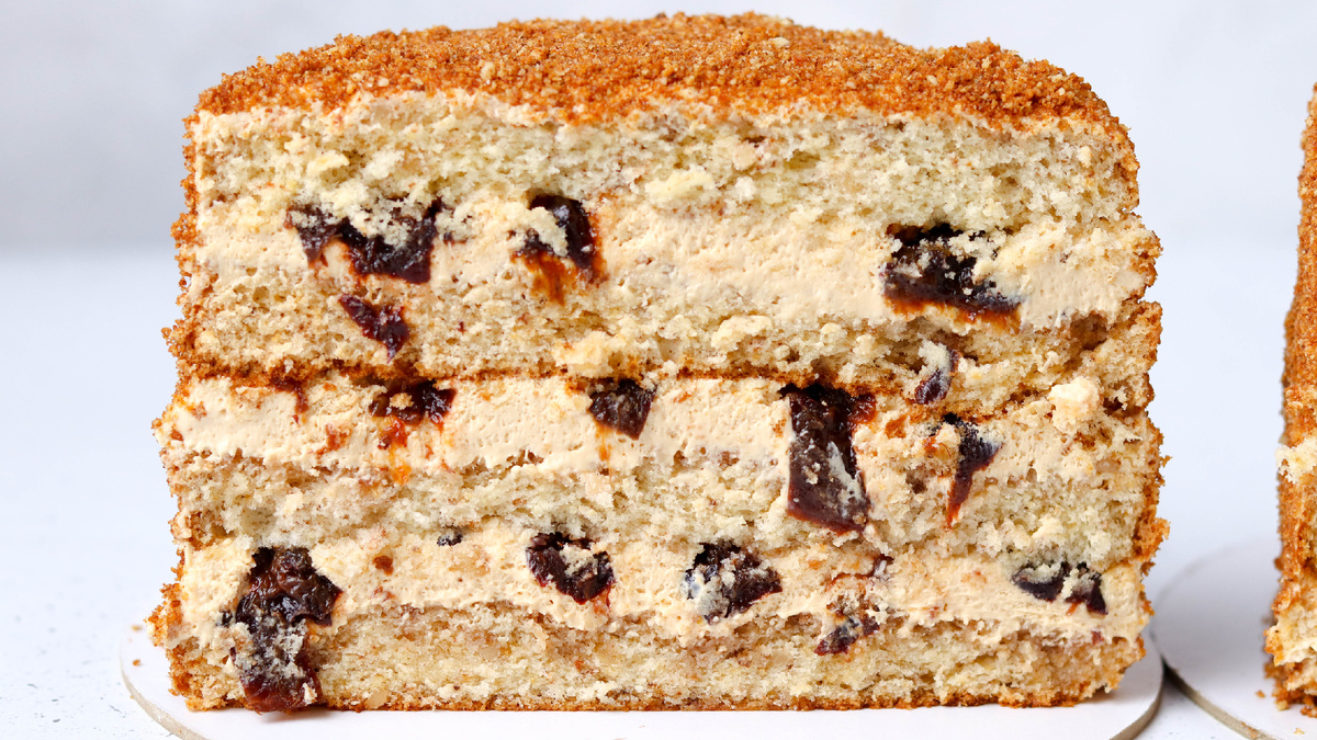 В этом потрясающем рецепте главные герои — медовый бисквит, воздушный крем на основе творожного сыра и сметаны, а также чернослив, предварительно вымоченный в ароматном настое. Такой десерт сочетает в себе простоту приготовления и удивительный вкус.