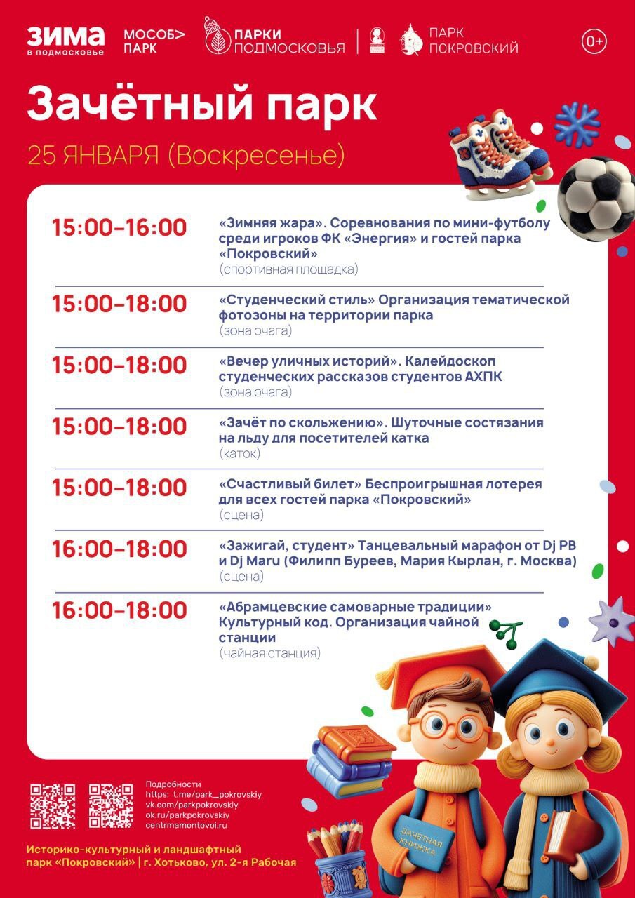 25 января в парках «Скитские пруды» и «Покровский» пройдет общеобластное мероприятие «Зачетный парк», приуроченное ко Дню российского студенчества.