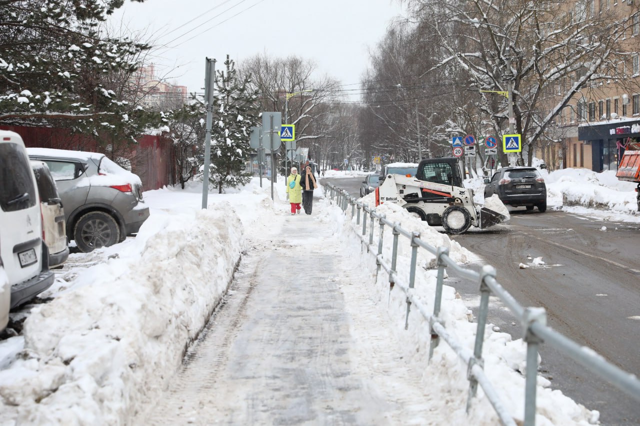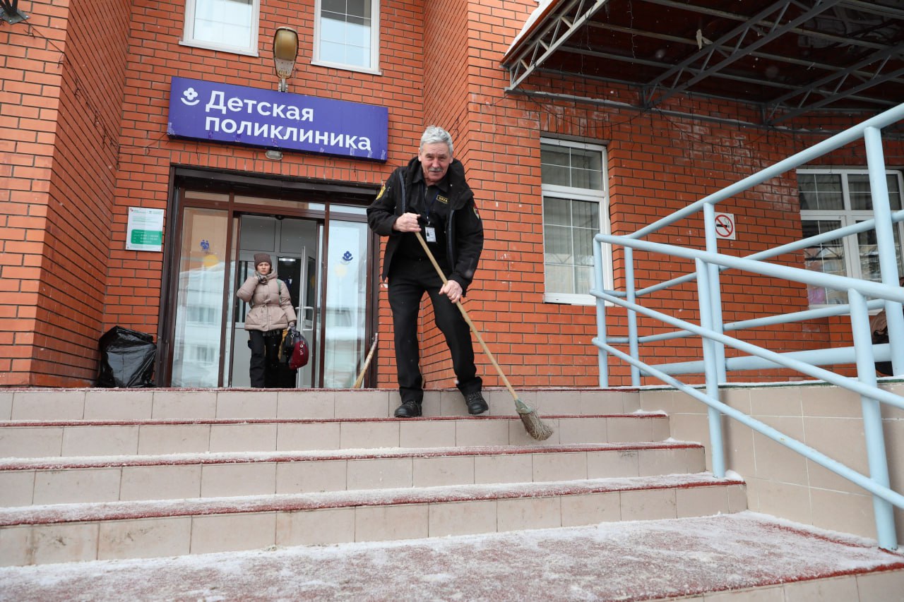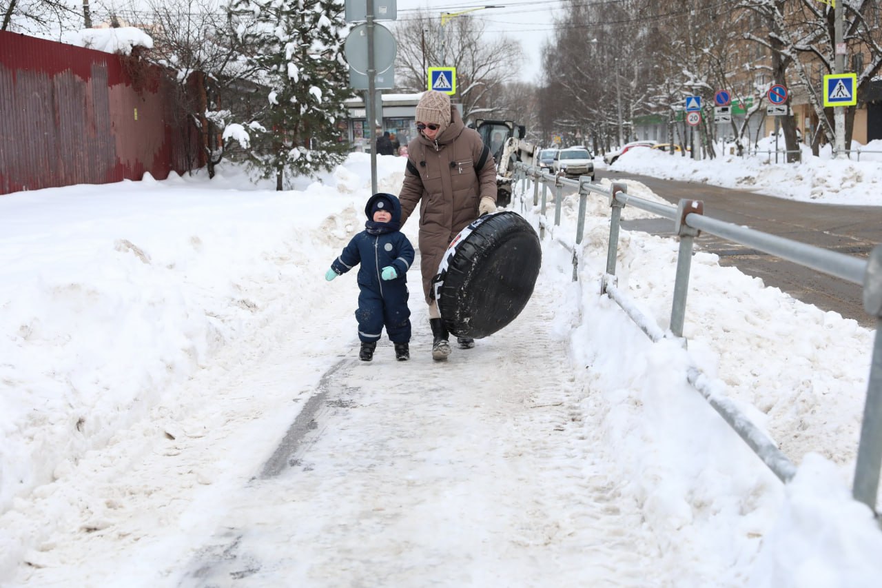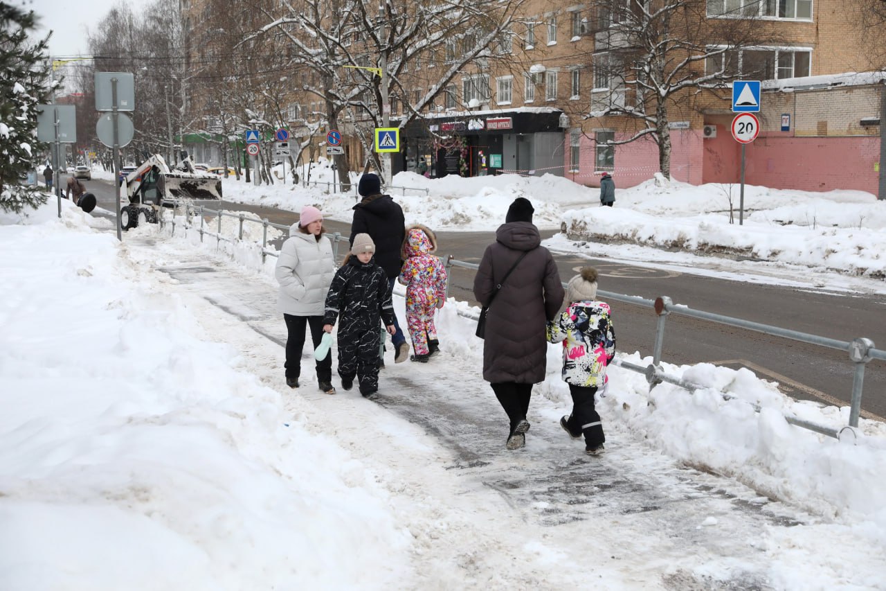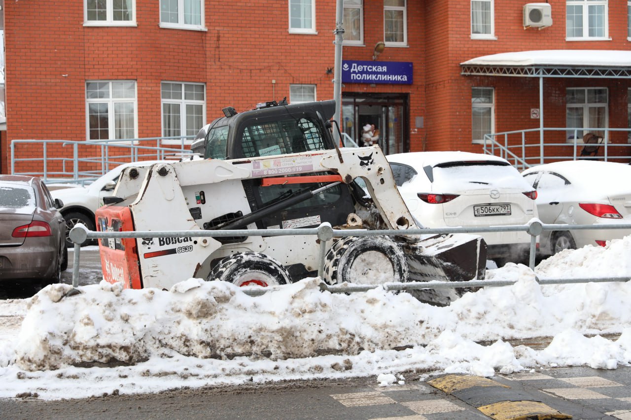 В Долгопрудном очищают от снега дорогу к детской поликлинике