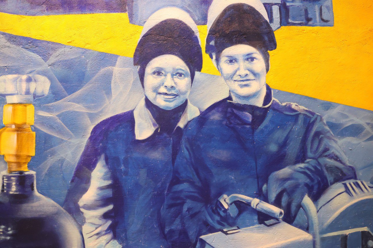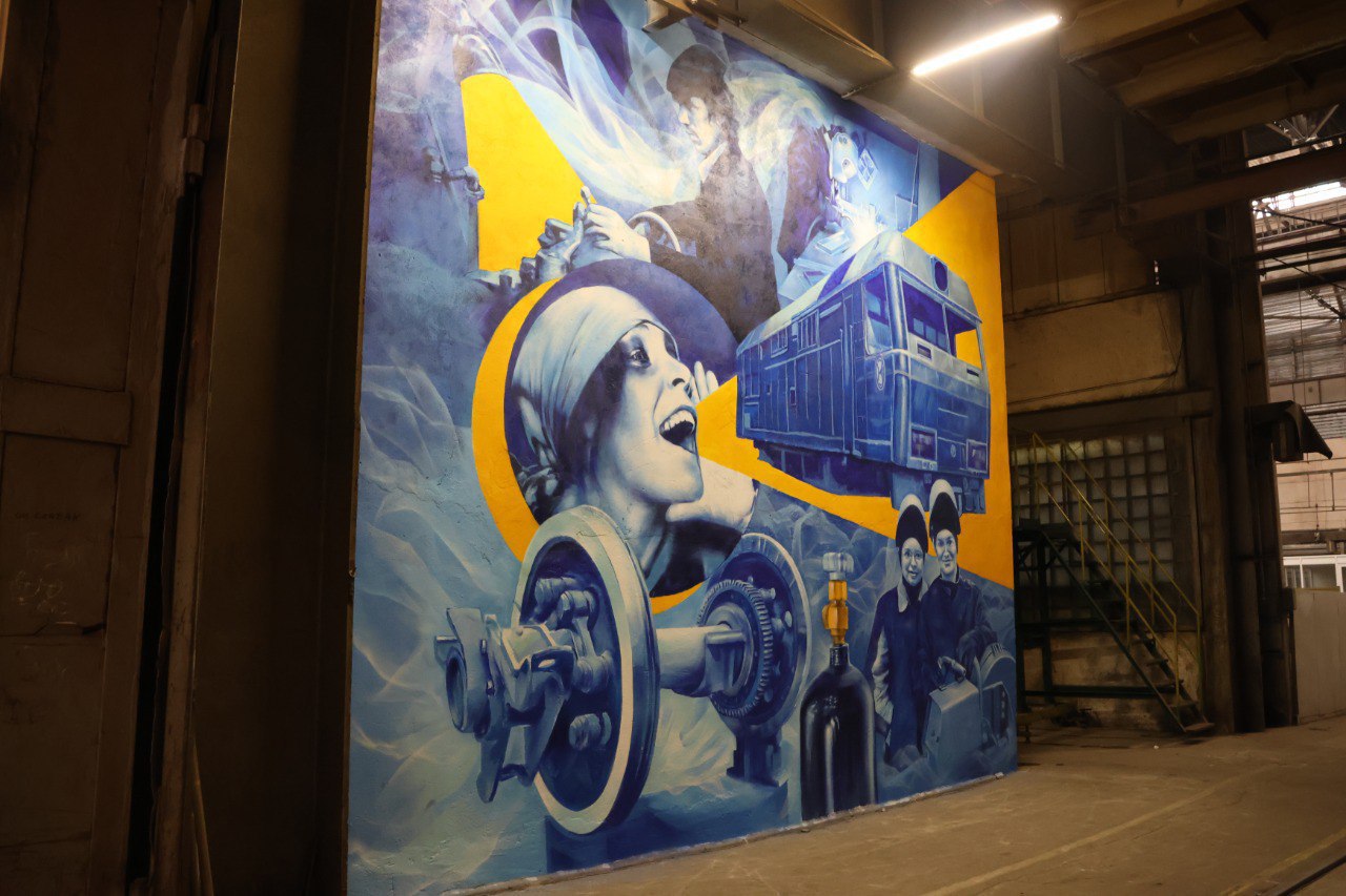 Новый арт-объект украсил заготовительно-кузовной цех Коломенского завода. Художники Павел Хомич и Кирилл Рощин создали здесь масштабную настенную картину.