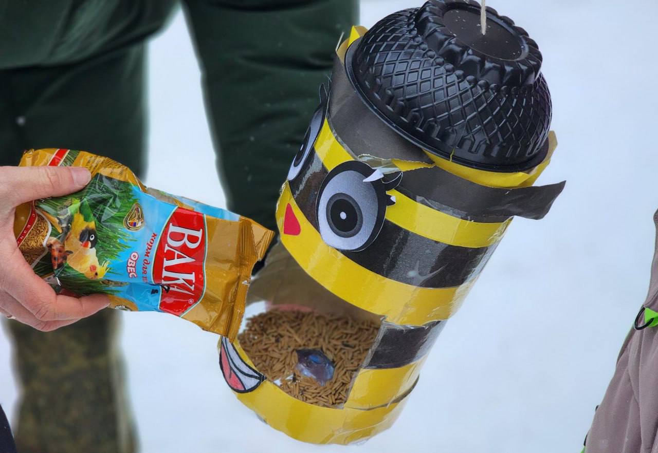 Лесничий кратко охарактеризовал каждую из профессий, объяснил, где можно получить соответствующее образование, а после теоретической части перешел к практике. Вместе с ребятами он развесил кормушки для птиц и рассказал, как важно и правильно помогать им зимой.