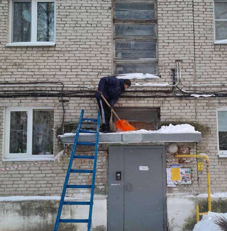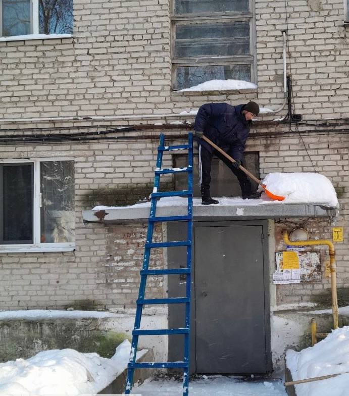 Продолжаем вести работы по очистке козырьков на наших МКД