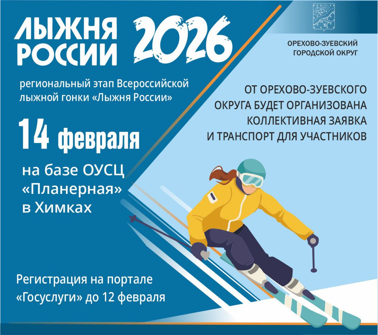 Выйти на старт могут все желающие в возрасте от 12 лет. Для участия нужно зарегистрироваться на портале «Госуслуги» до 12 февраля.