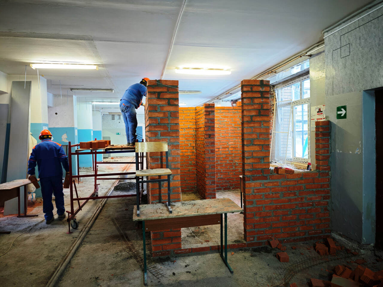 По словам руководителя проекта Евгения Полищука, строительная готовность объекта – 15%, капремонт ведется в соответствии с графиком. Строители параллельно работают внутри здания и на внешней отделке. На фасадной части лицея - монтируют блоки теплоизоляционного материала, внутри - заканчивают демонтаж устаревших элементов конструкций, приступают к отделке помещений и кладке новых кирпичных стен.