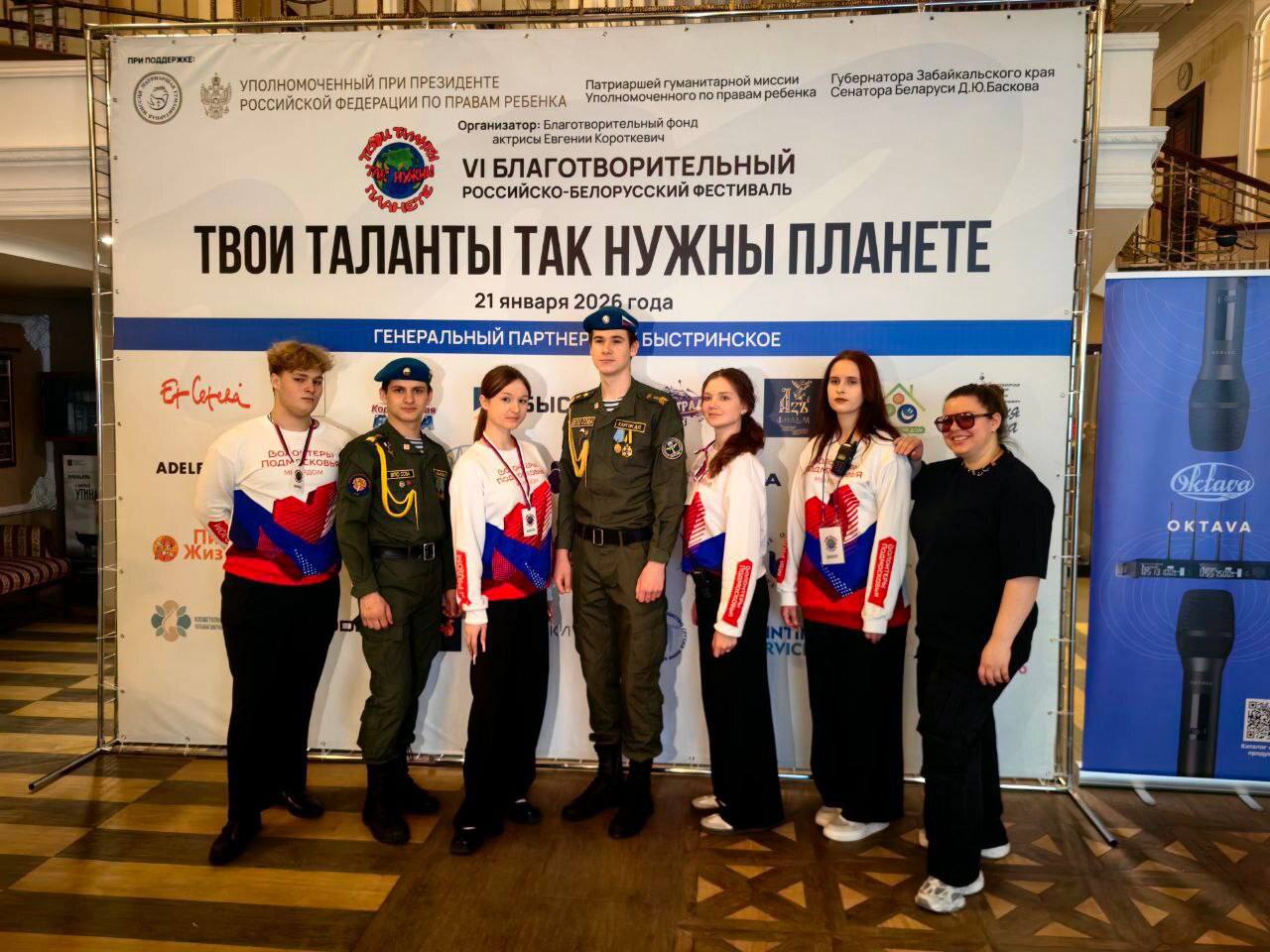Воспитанники военно-патриотического отделения «СОВА» и «Волонтёры Подмосковья» из Химок приняли участие в шестом международном благотворительном фестивале «Твои таланты так нужны планете». Идея проекта — показать, что искусство и творчество стирают границы.