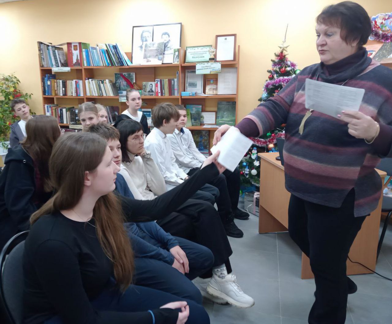В конце встречи были озвучены причины почему писать от руки полезнее, чем печатать на клавиатуре. Звучали стихи о письмах и были представлены книги из фонда библиотеки на тему встречи.